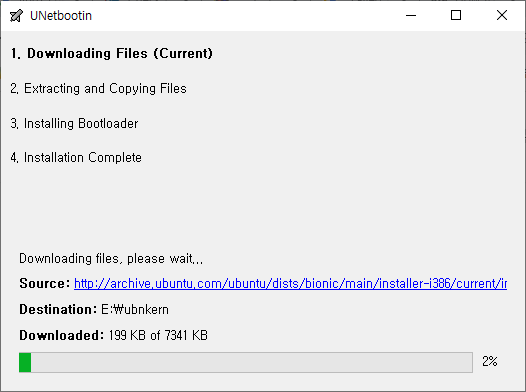 시스템을 리부팅하면 기존 운영체제와 "UNetbootin" 중에 무엇을 사용할 것인지 선택하는 화면이 나오는데 , 이때 "UNetbootin"을 선택하면 본격적으로 리눅스 설치가 진행된다. 이후로는 전형적인 리눅스 설치 과정이므로 화면 질의에 따라 적절한 응답을 입력하면 무난하게 시스템을 설치할 수 있다.