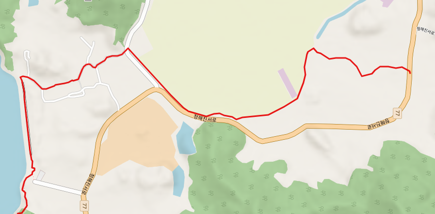 북적북적한 해조류 센터에서 출발하는 남파랑길 87코스는 완도해변공원을 지나 장보고대로를 따라 이동하다가 완도타워(2.5Km)가 있는 동망봉을 오른다. 완도타워를 내려오면 망석리의 산길을 오르락내리락하며 완도윈네스리조트(6.1Km)를 지난다. 리조트 이후로 잠시 도로로 나가지만 이내 다도해해상 국립공원의 부꾸지 분기점을 향해서 임도를 오른다. 국립공원의 임도와 숲길을 걸어 국립공원 탐방안내소에(13.7Km) 이른다.