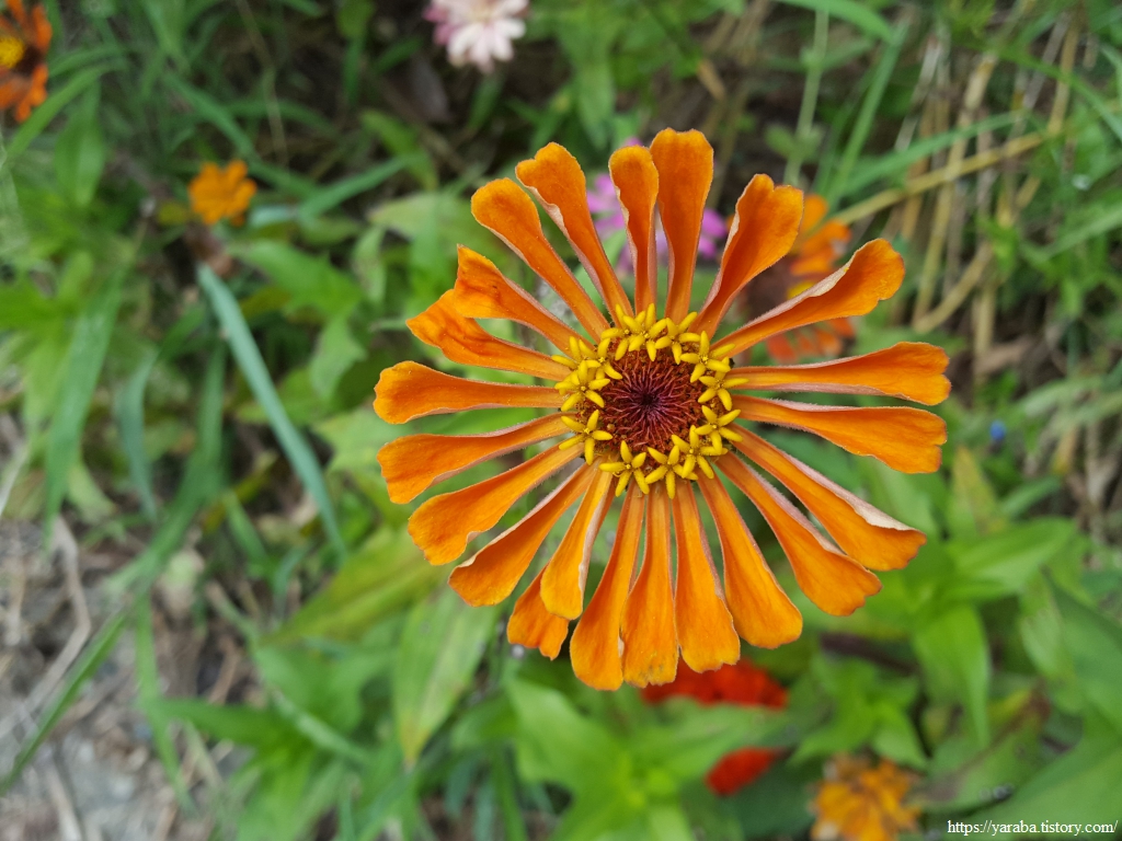 모양도 제각각, 색상도 제각각이다. 북아메리카 원산인 국화과의 한해살이풀로 들꽃을 개량하여 관상용으로 키운 것이라고 한다. 꽃이 백일동안 핀다고 붙여진 이름으로 백일초라고도 한다.