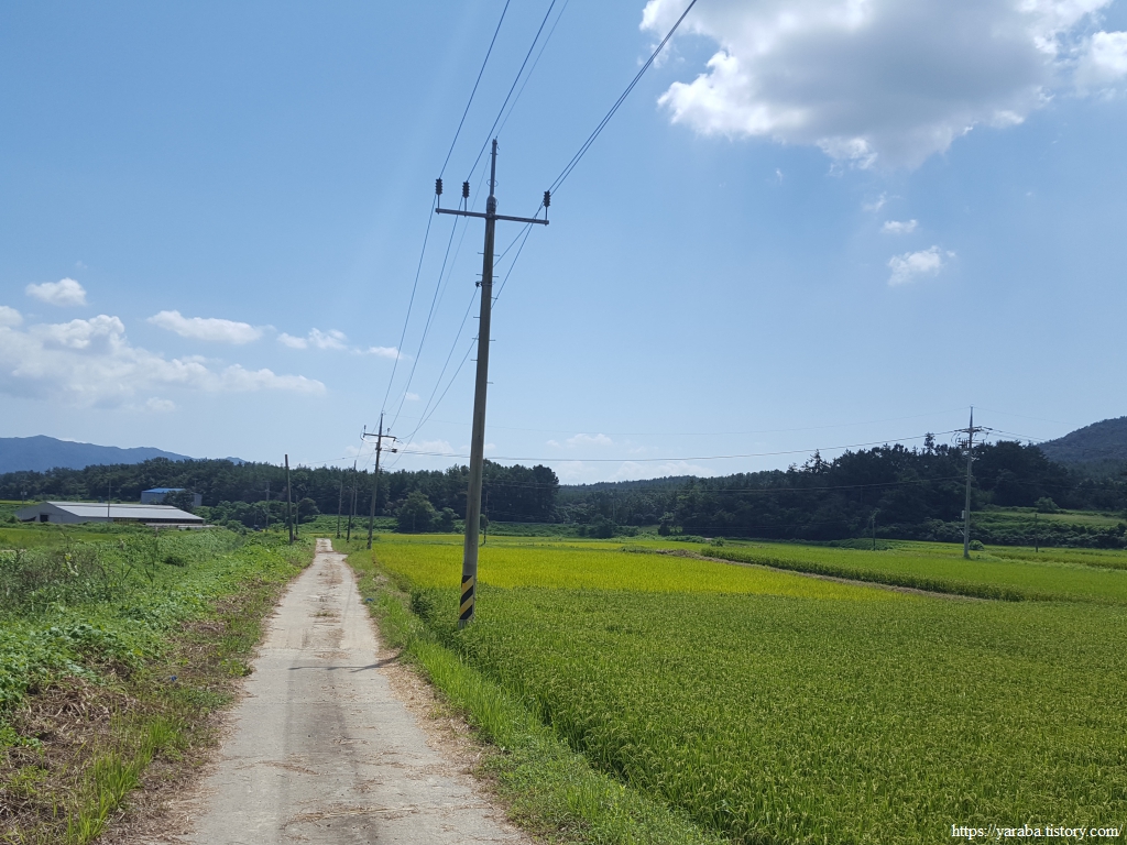 길지 않은 숲길을 벗어나면 땡볕 아래서 마점 마을을 향해 들길을 걷는다. 백련사에서 다산초당에 이르는 숲길에서 워낙 모기에 뜯기다 보니 이제는 따가운 햇빛도 반가울 지경이다.