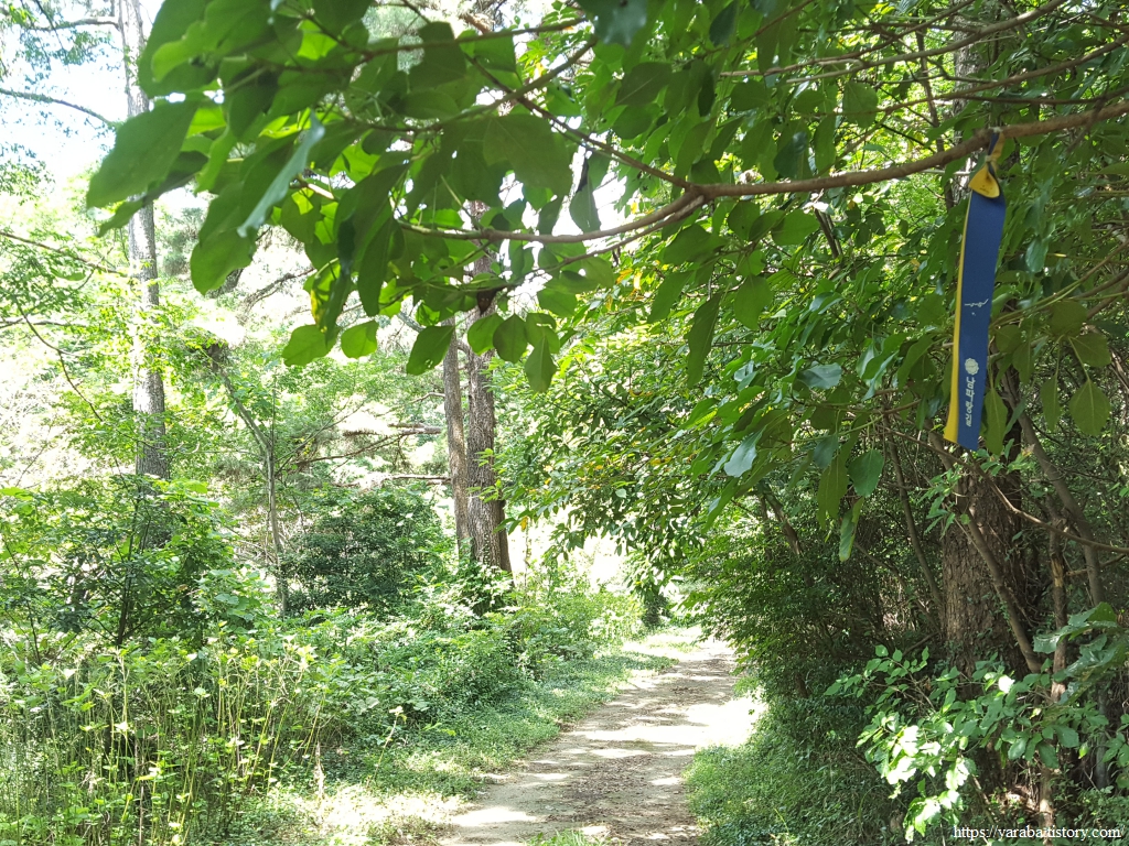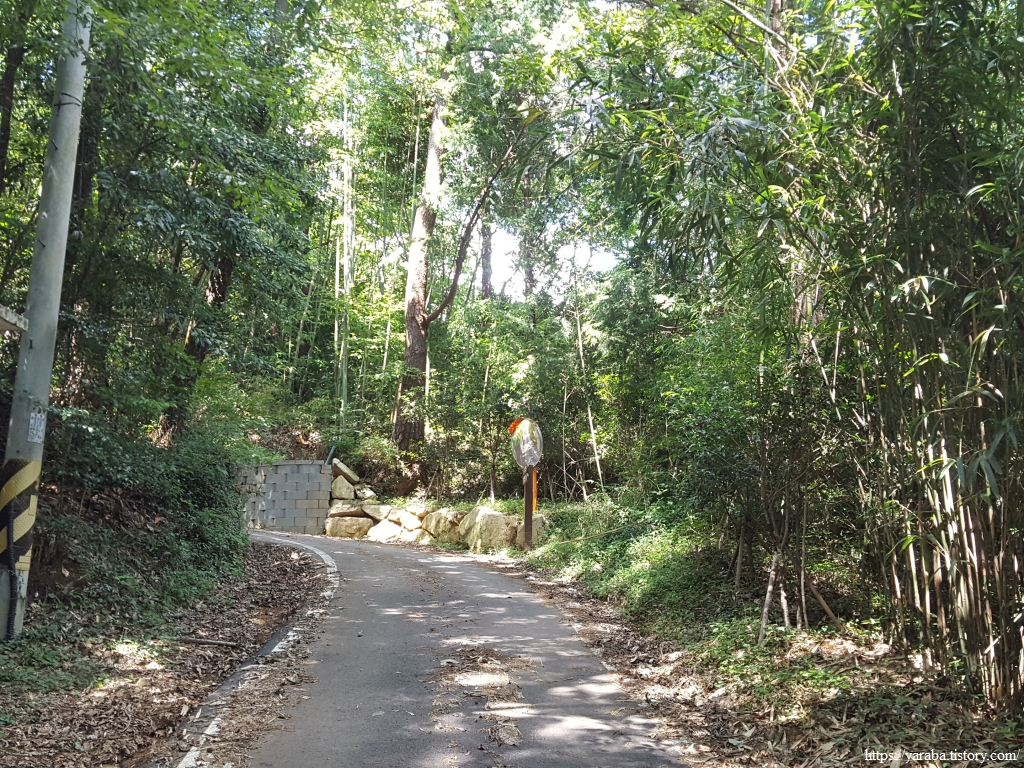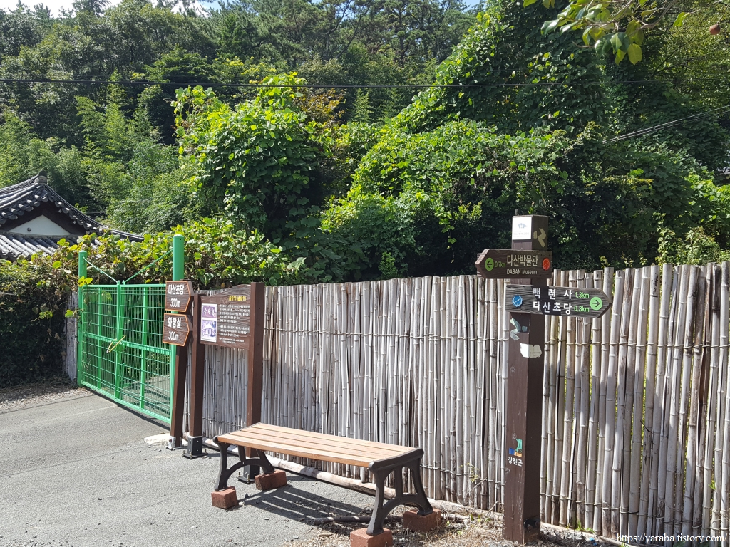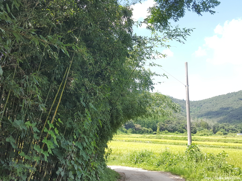 인근에 다산박물관이 있지만 남파랑길은 우회전하여 마점 마을로 간다. 길 옆 대나무 숲이 무더위 속에서 잠시나마 청량함을 전해 준다.