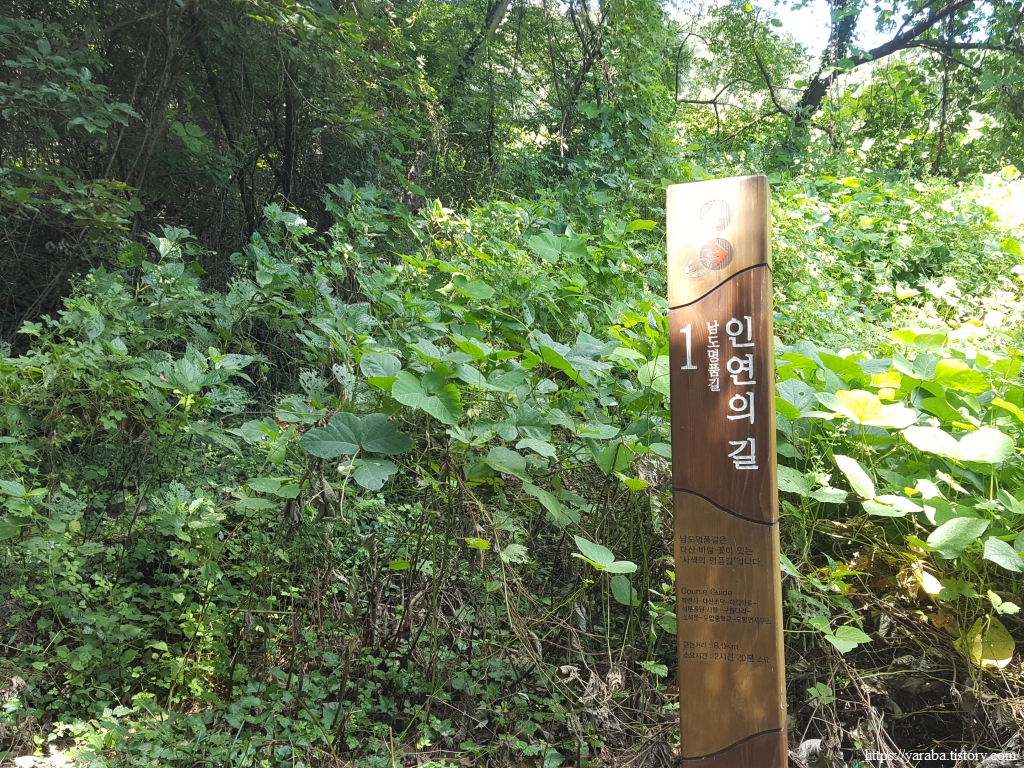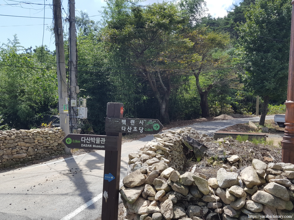 어쨌든 석문공원에서 다산초당과 백련사까지 이어지는 남도 명품길 1코스 인연의 길은 남파랑길 83코스와 함께 한다. 잠시나마 나무 그늘이 있는 들길을 걸어 좋다.