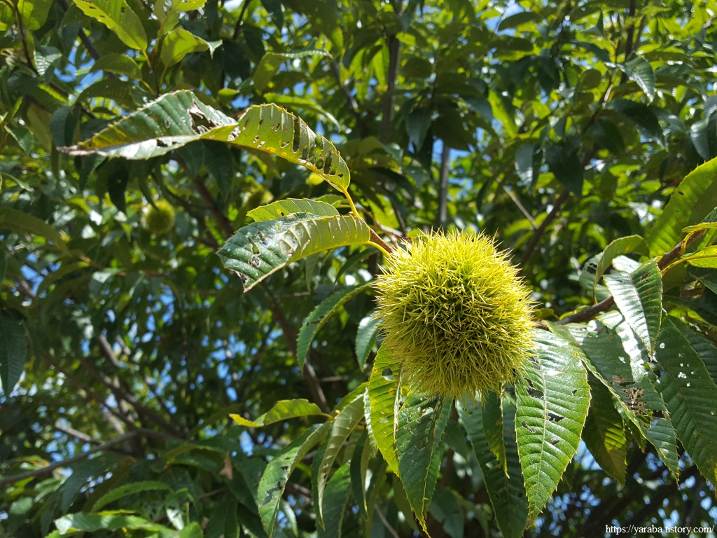 가을의 상징이라고 해도 무방한 밤송이를 가까이에서 만나니 반갑다. 가시가 무섭게 솟아 있지만 저 사이를 비집고 벌레가 들어가니 곤충들도 참 대단하다 싶다. 벌레들도 맛있으니 먹겠지! 하며 지나간다. 벌레 없애겠다고 살충제를 쓸 것인가, 아니면 너도 먹고, 남은 것은 내가 먹을게 하며 느긋한 마음을 가질 것인지는 평상시에 텃밭을 일구는 사람으로 늘 고민하는 선택이다. 편하기는 한데, 화학 약품을 뿌린 것을 내가 먹는다고 생각하니 살충제 선택은 늘 고민되는 선택이다. 전등으로 날벌레를 유인하는 친환경 방제가 있기는 하지만 가격도 세고, 한계가 있다.