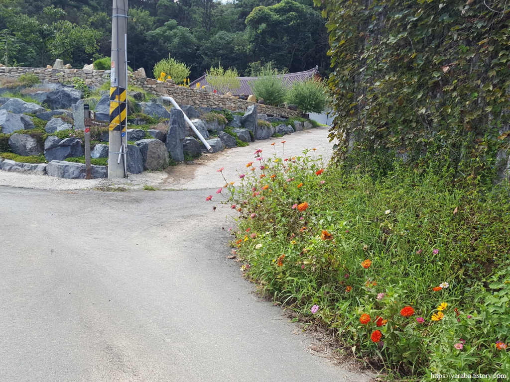 길은 마점 마을을 통과한다. 대동여지도에도 등장한다는 아주 유서 깊은 마을이다. 길가에 핀 백일홍이 조용한 마을에서 유일하게 우리에게 인사를 건네는 존재이다.