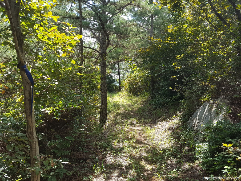 남파랑길 빨강 표식과 리본을 따라 길을 이어간다.