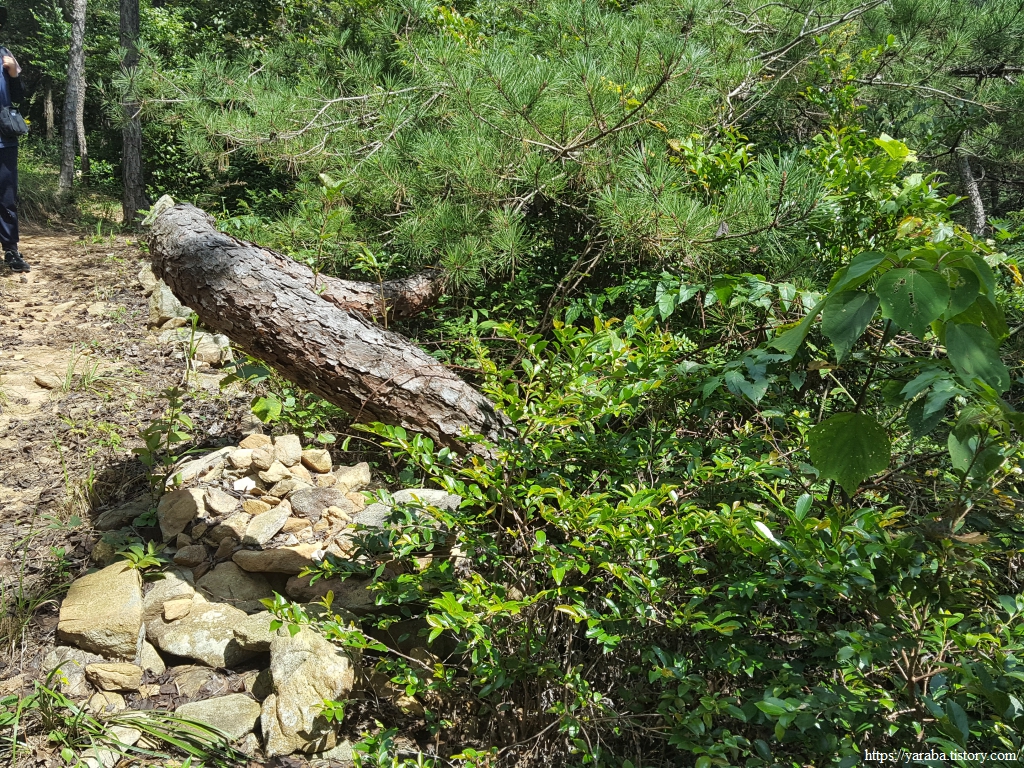 이곳을 걸었던 다른 이들의 이목도 붙잡았을까? 아주 사연 깊게 휘어진 소나무 줄기 옆에 작은 돌들을 하나씩 놓고 갔다.