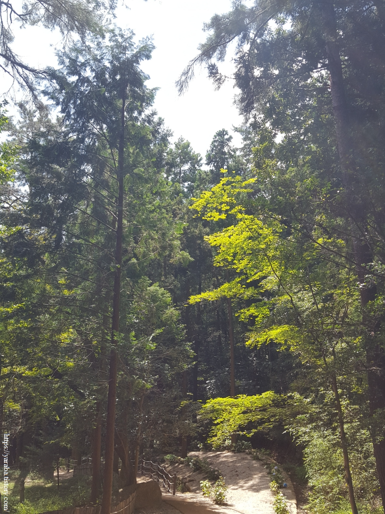 솔내음, 숲냄새, 가을 향취 그 어떤 표현으로도 다 담지 못할 향취 속에 빠지는 최고의 산책길이다. 여정을 끝내고 싶은 조급한 마음이 아니라면 아주 천천히 아주 느리게 걷고 싶은 숲길이다. 이곳에서는 태양도 더 이상 뜨겁지 않다. 따스하다. 깊은숨을 몰아쉬며 내속의 것들은 내버리고 나무들의 호흡을 내속에 담고 싶다.