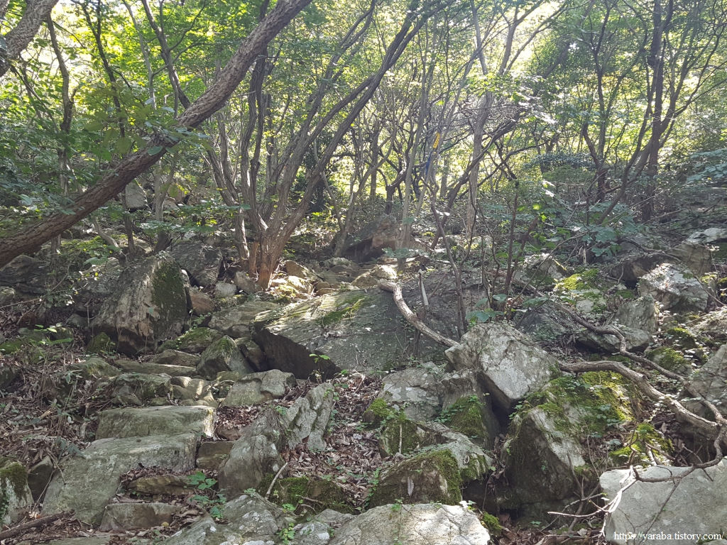구름다리로 올라가는 길, 길 초입에 가파른 길과 완만한 길을 택하는 표지판이 있었는데 완만한 길을 택해도 오르막길이 이 정도이니 아마도 가파른 길은 바위를 타야 하는 길이지 않을까 싶다.
