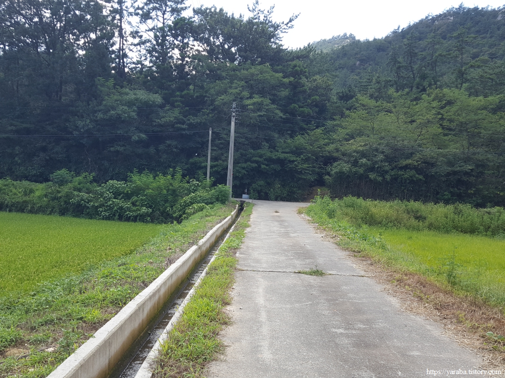 길은 도암을 가로지르는 백도로 도로를 가로질러 개천을 건너 이어간다.