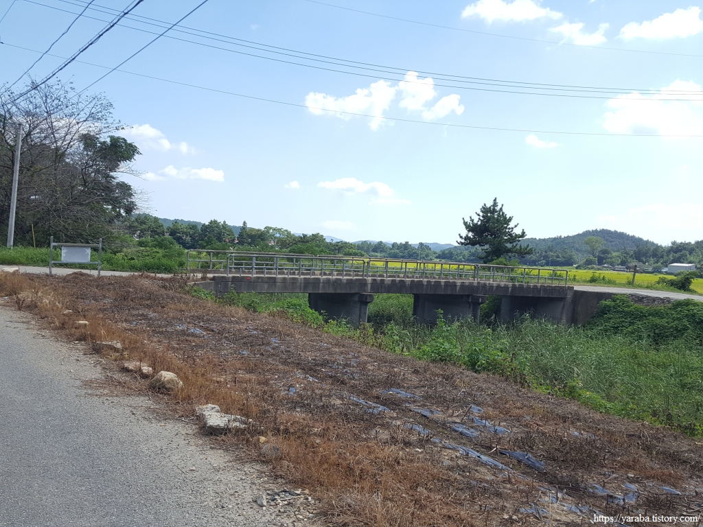 석문산에서 내려온 길은 봉황로 도로를 따라 남쪽으로 내려가다가 봉황저수지에서 내려오는 물길을 건너 신리마을로 향한다.