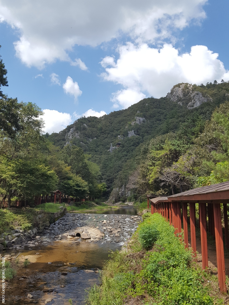 드디어 도암석문공원에 도착했다. 만덕산과 석문산 사이로 흐르는 맑은 도암천이 우리를 반겨 준다.