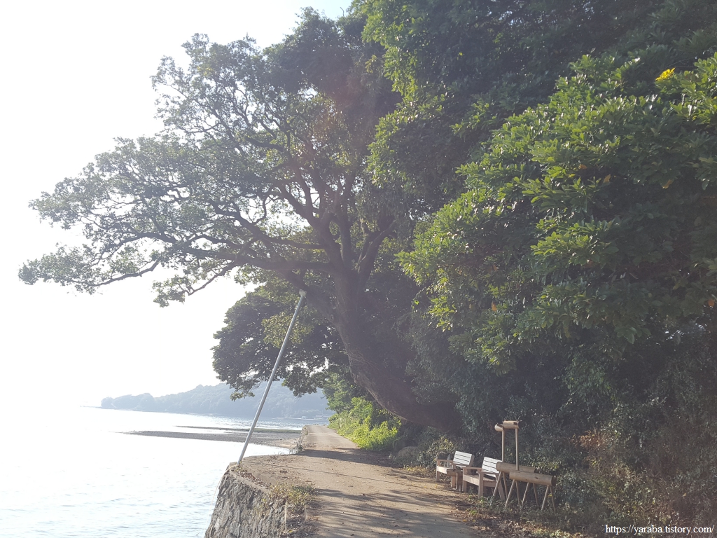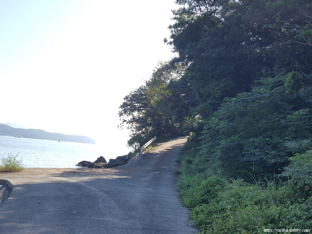 우람한 나무들과 함께하는 영풍리 해안길은 이른 아침부터 내리쬐는 햇빛만 아니라면 훌륭한 산책길이다. 아니다 뜨거운 태양도 넉넉히 받을만한 훌륭한 산책길이다.