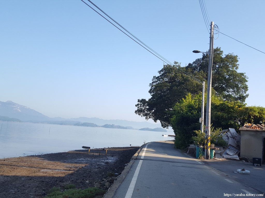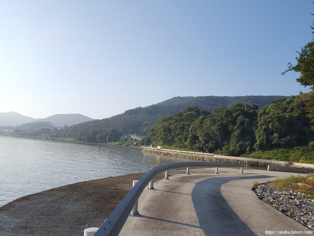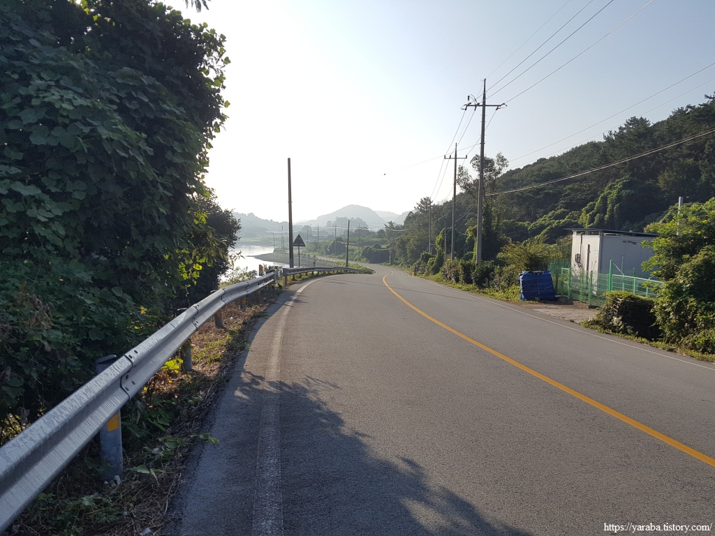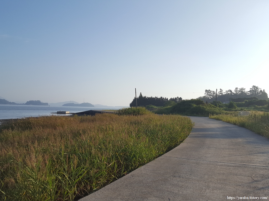 남선마을 포구를 지나는 길, 이번에는 아침 태양과 정면으로 마주한다. 지구의 공전, 자전, 태양 내부의 핵융합, 기타 여러 우주 관련 이야기를 꺼내지 않고 그냥 무식하게 태양과 정면으로 마주하는 무식한 호기를 부리면서 길을 이어간다.