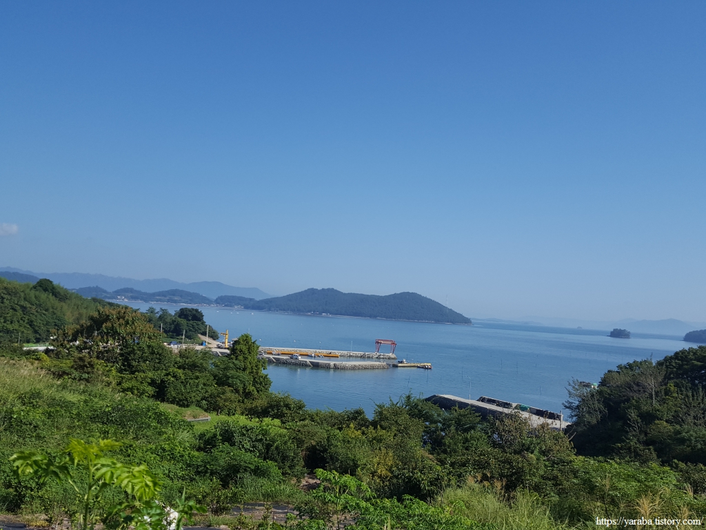 대창 1구 마을을 지나 대창 2구 마을로 가는 언덕을 오르면서 지나온 마을을 돌아본다. 해안으로는 곳곳이 양삭장이다.