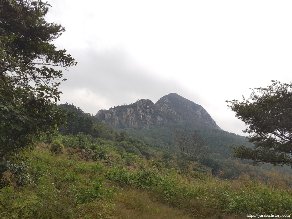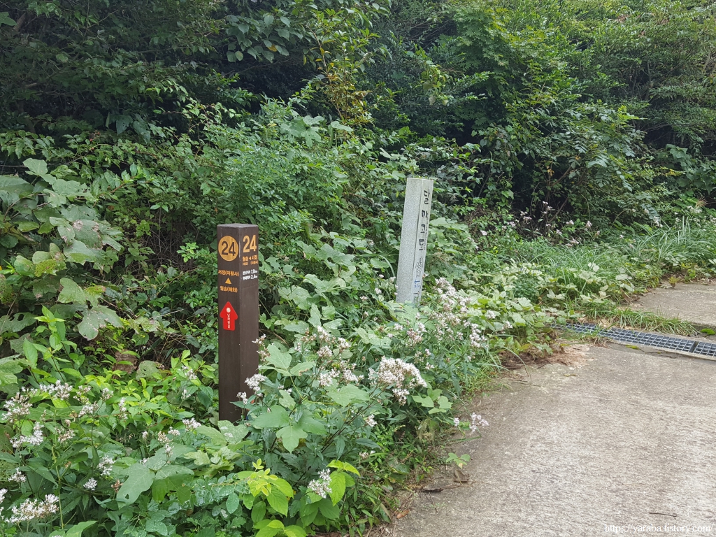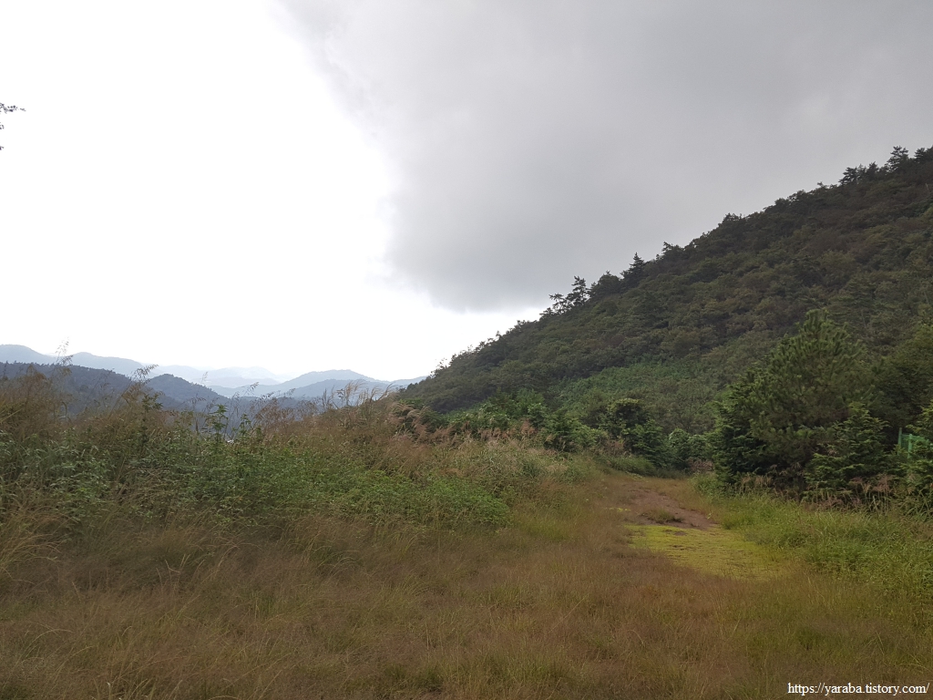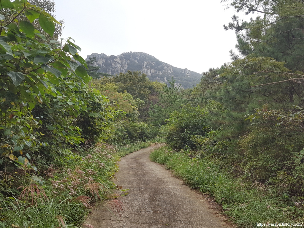 콘크리트 임도가 아닌 흙길 임도도 괜찮다. 다만, 이른 아침에 출발한 까닭에 풀잎에 맺힌 이슬들이 아직 마르지 않아 신발 앞부터 천천히 젖고 있다. 게다가 예보에 없던 비까지 토닥토닥 내리기 시작한다.ㅠㅠ