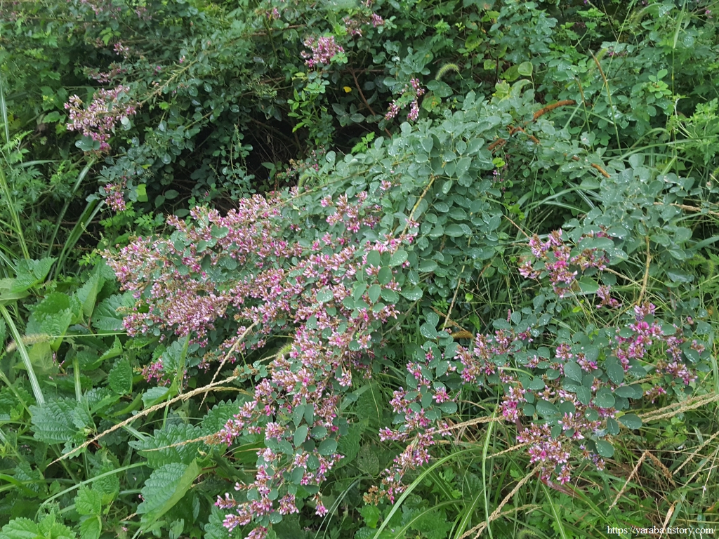 촉촉하게 비를 맞은 싸리나무가 여름에서 가을로 넘어가는 계절에 보라색 꽃을 피웠다. 아까시나무처럼 싸리나무도 콩과식물로 벌을 부르는 밀원 식물이라고 한다. 우리 민족에게는 참으로 친숙한 나무였지만 세월이 흘러 플라스틱이 난무하는 세상에 익숙해진 세대에게는 처음 듣는 나무일지도 모르겠다. 회초리 하면 바로 싸리나무 회초리였고, 싸리나무를 묶음으로 해서 횃불을 만들었으며 바구니, 소쿠리 등 생활 용품을 만드는 용도로도 사용했고, 싸리 빗자루와 울타리 등 싸리나무의 쓸모는 대나무와 비교해도 결코 뒤지지 않았다. 싸리나무의 꽃은 처음 보는 듯하다.