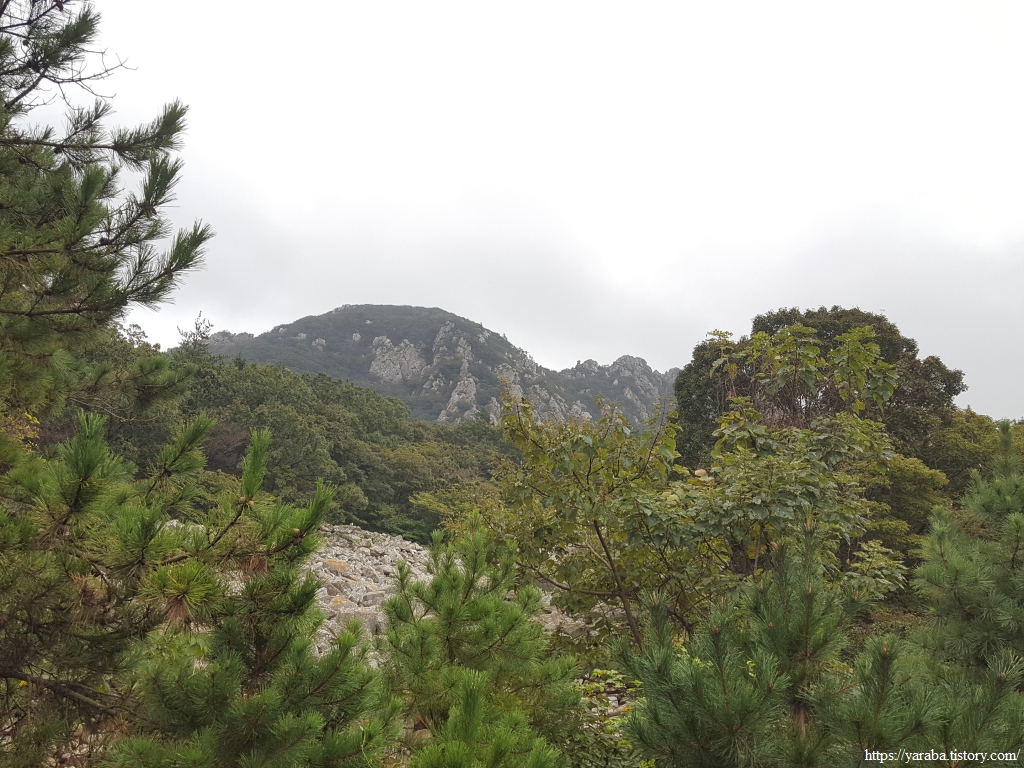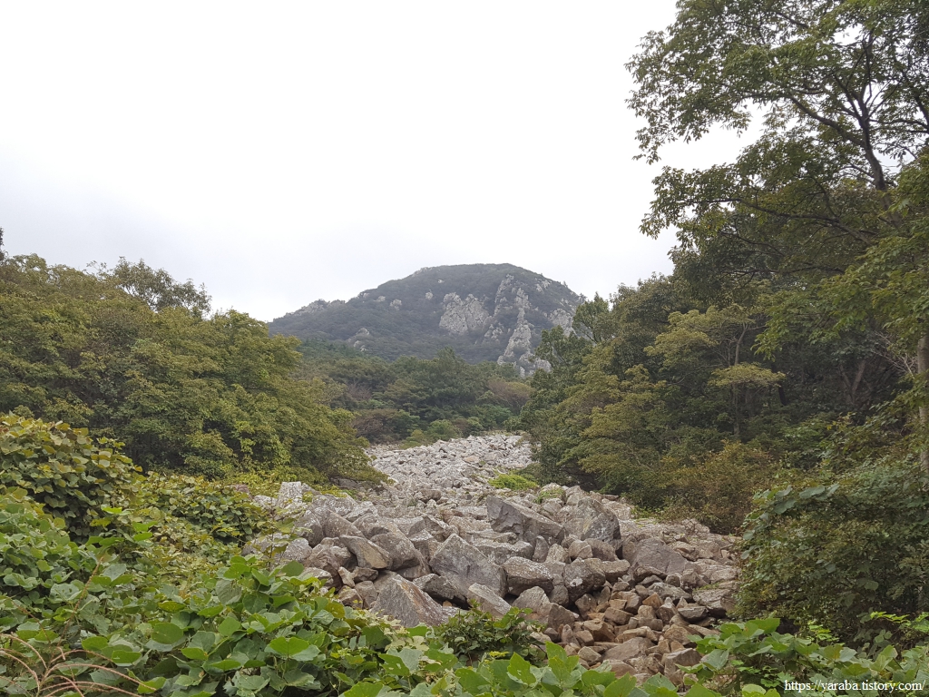 너덜지대를 지난 길은 계속을 임도를 걸어간다.