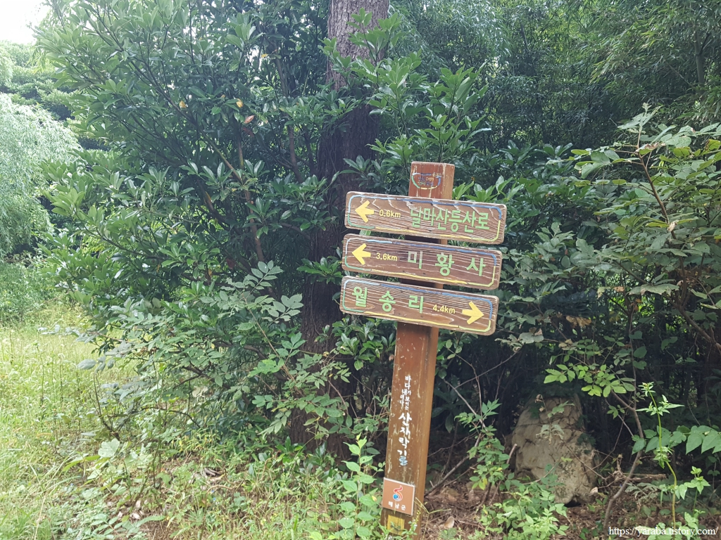 숲길로 미황사 천왕문 앞에 도착하여 남파랑길 마지막 코스인 90코스 안내판을 보는 것으로 여정을 마무리한다.