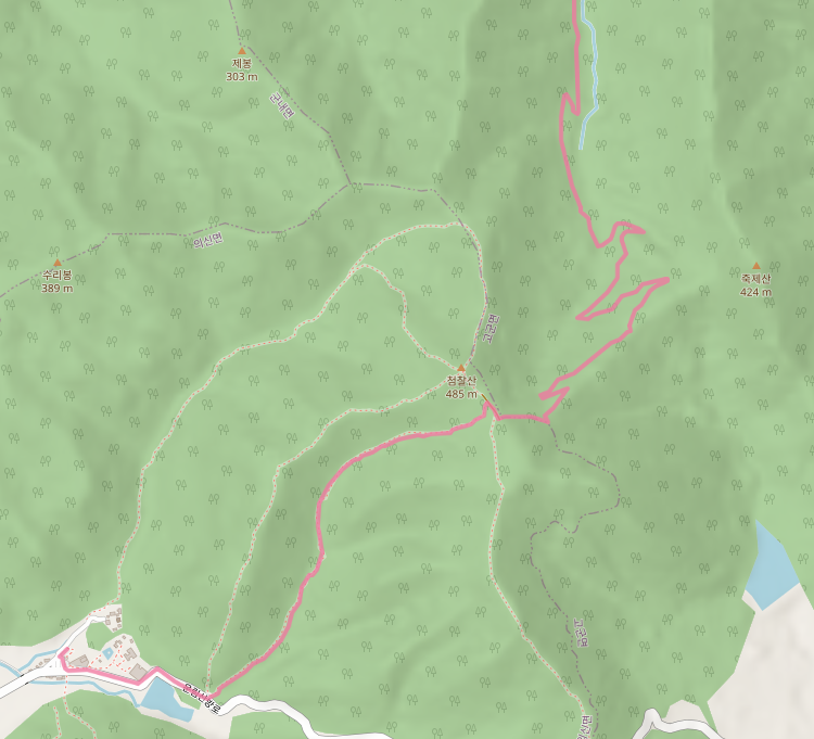 첨찰산과 죽제산 사이의 계곡으로 올라가는 길은 진도기상대 입구(9.8Km)까지는 임도를 따라 올라가고 고개를 넘으면 이후로는 등산로를 통해서 봉화골을 거쳐 운림산방 주차장에서 여정을 마무리한다. 사천리 버스 정류장에서 진도터미널로 이동하려면 농어천버스를 타야 하는데 의신면 사천 쌍계사 방면으로 가는 진도 터미널 출발 기준 시간은 7:40, 10:30, 13:20, 16:30, 18:00이다. 터미널까지 거리가 5Km 이므로 시간이 애매하면 택시를 타는 것도 방법이다.