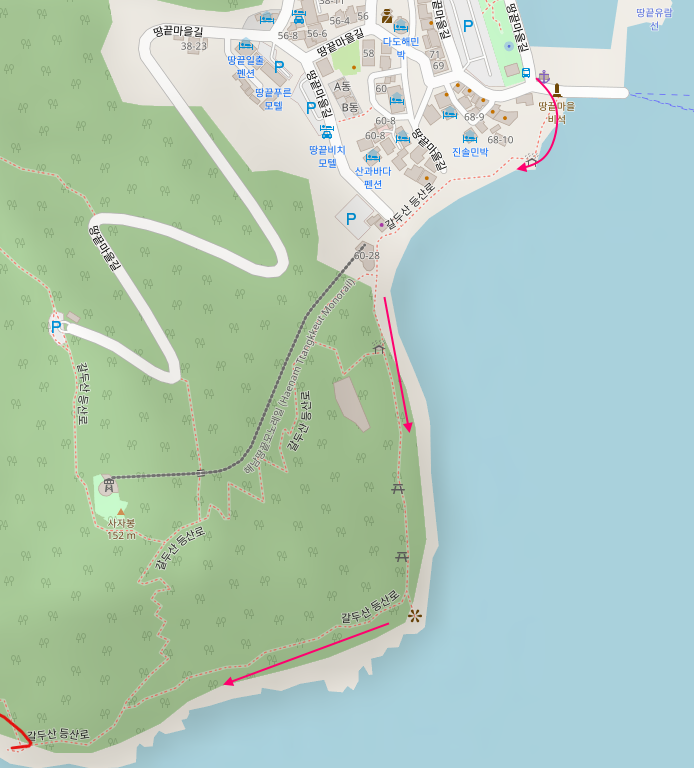 땅끝마을 정류장에서 버스를 내리면 지난번 남파랑길을 끝냈던 상황과 반대로 땅끝마을에서 해안선을 따라 조성된 산책로를 따라서 땅끝탑으로 이동한다.