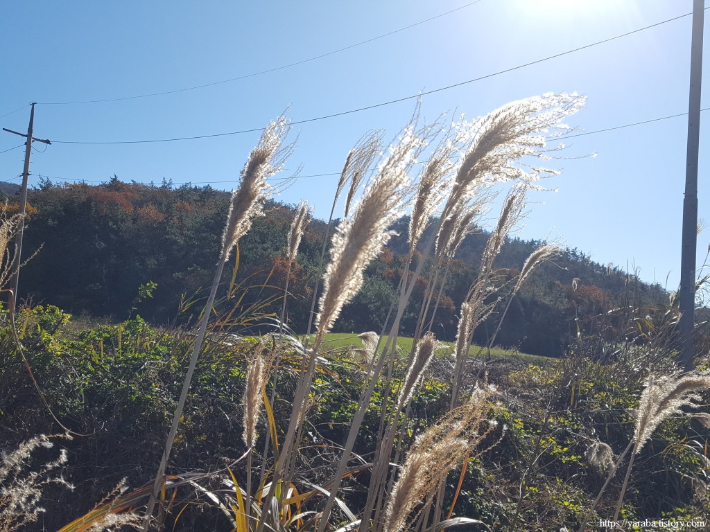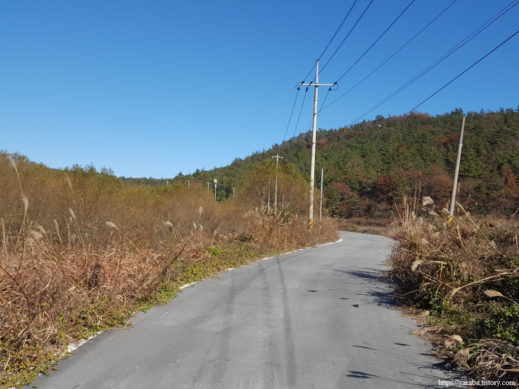 마봉리로 가는 고개를 넘는 길 한낮의 햇살에 반짝이는 억새가 늦가을의 운치를 더해준다.