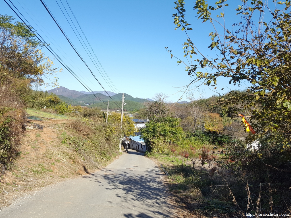 높지 않은 고갯길을 내려가면 심정골 소죽마을에 닿는다. 정성스럽게 마을을 가꾼 모습에 엄지가 저절로 올라가게 하는 마을이다.