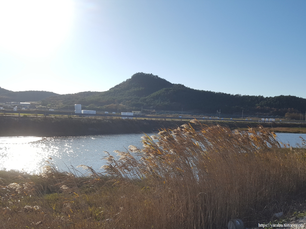 산정천 하구의 수문을 지나 다시 산정천을 건넌다. 하구는 바닷물이 들어오는 기수 구역이라 갈대밭이 빽빽하다. 이런 갈대밭을 통과하며 물이 조금이나마 정화되어 바다로 나갈 것이니 이런 곳에는 꼭 필요한 공간일 것이다.