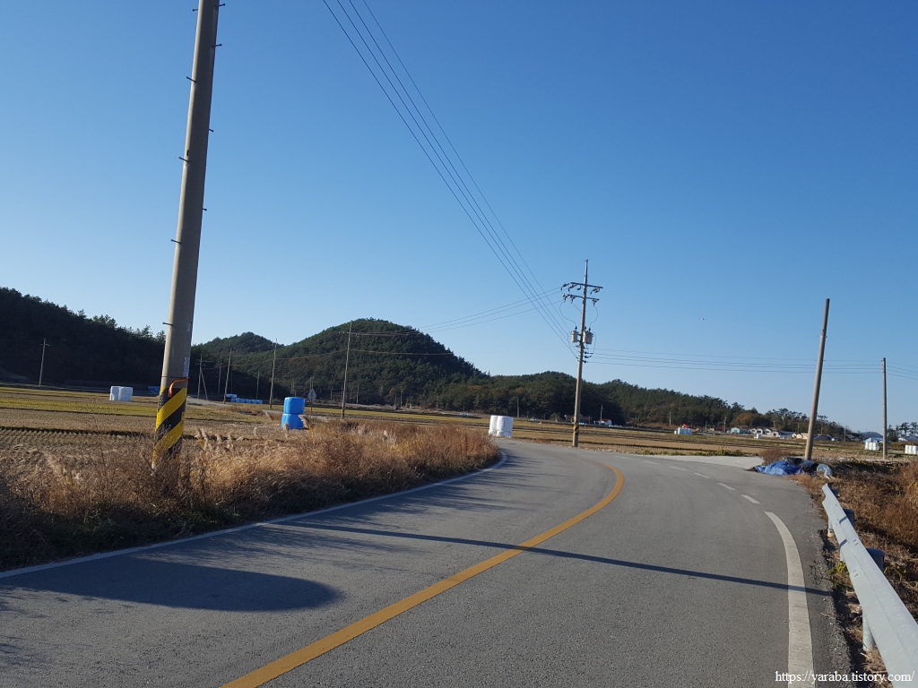 한참을 들판을 걷던 서해랑길은 송암마을에서 잠시 77번 국도변으로 나온다.