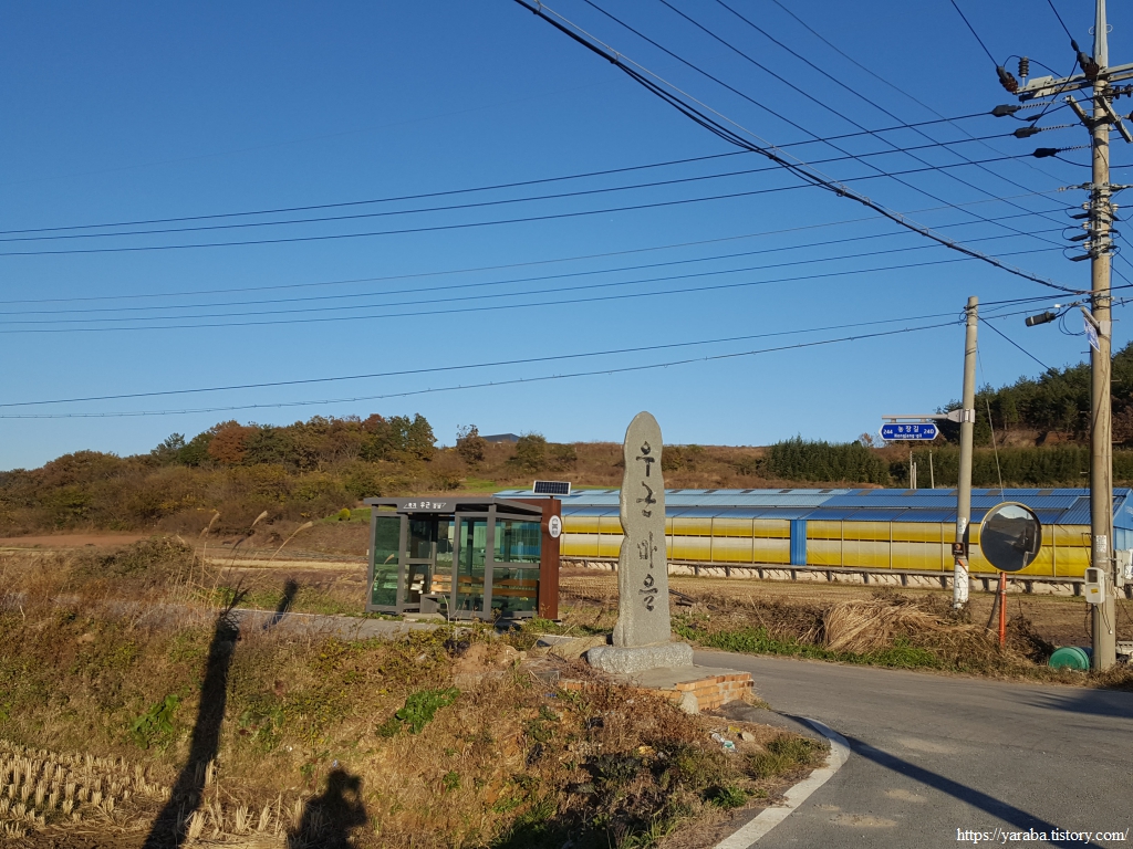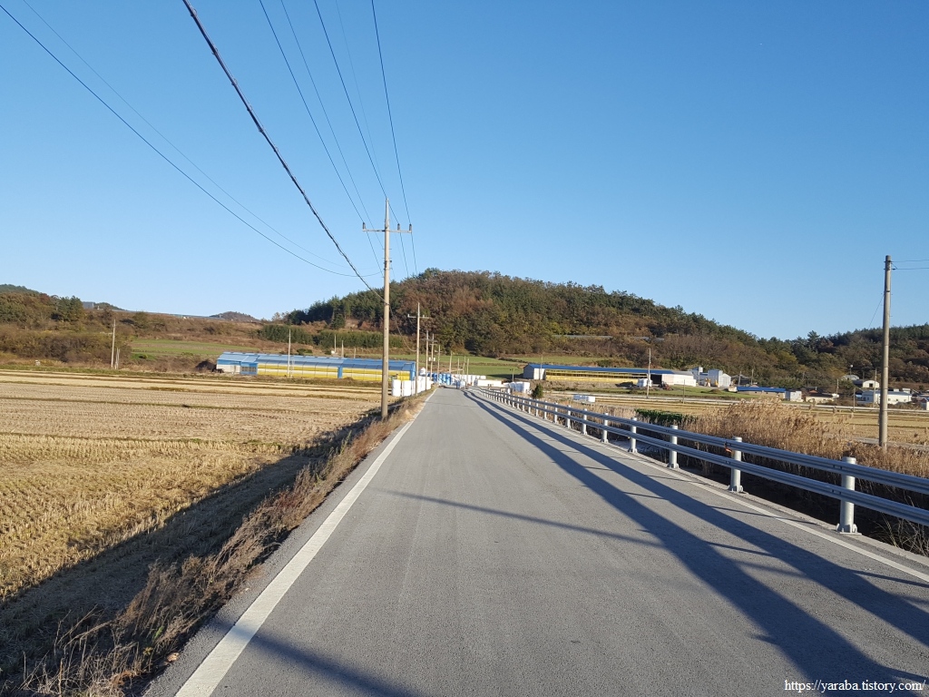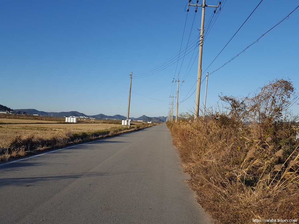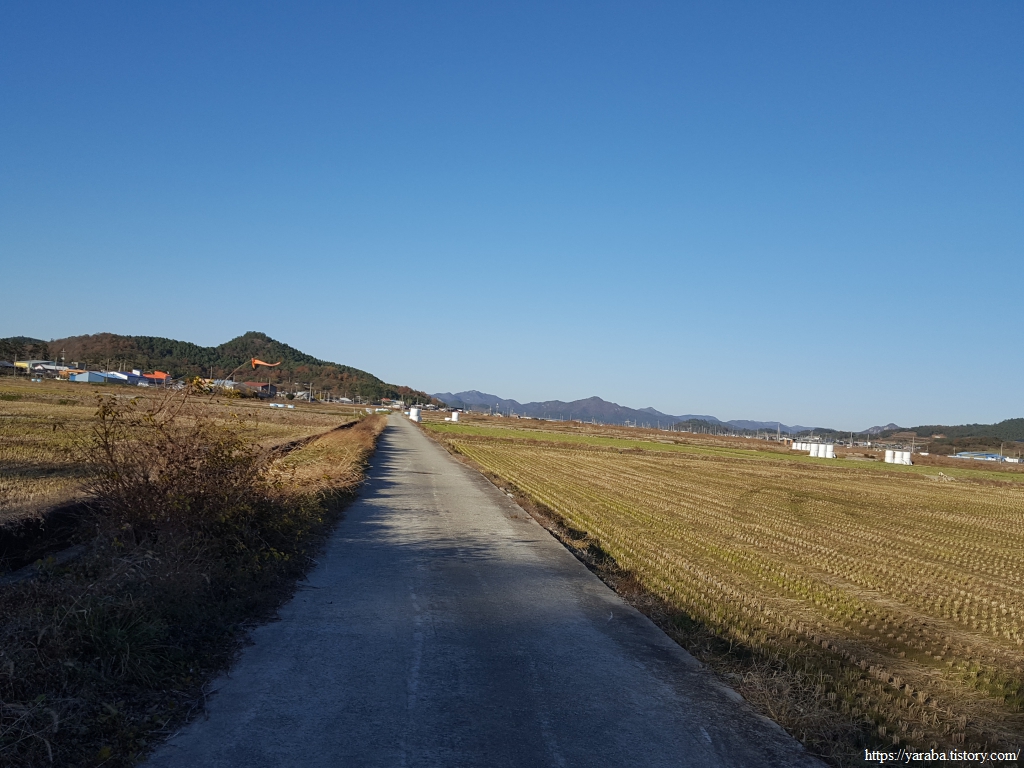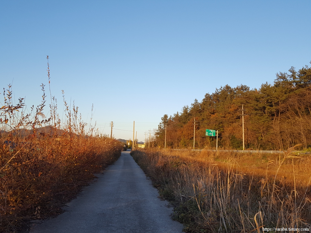 산정천 수문을 지난 길은 잠시 내장리로 이어지는 내장길 도로를 걷지만 이내 우회전하여 들길을 통해서 우근리 마을로 향한다.