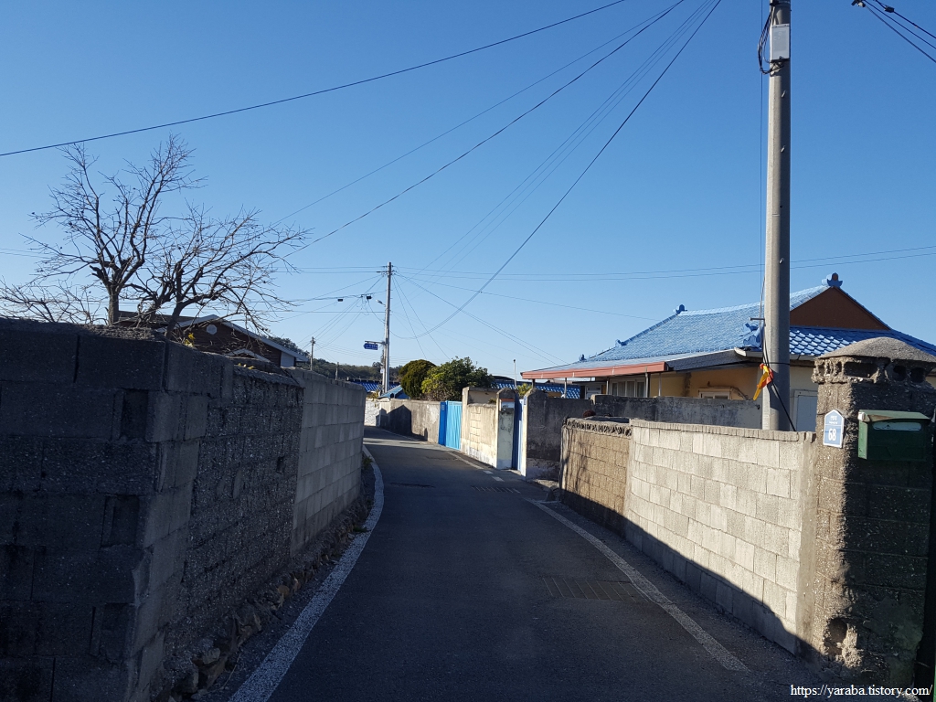 송지면사무소 옆길을 통해 읍내를 빠져나간다. 면사무소가 있는 이곳은 송지면 산정리로 이미 18세기부터 산정이라는 이름을 사용했다고 한다. 해남에서 송지면 읍내로 오려면 산정 정류장에서 내리면 된다.