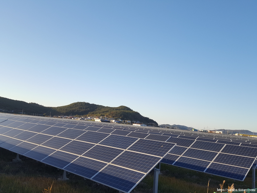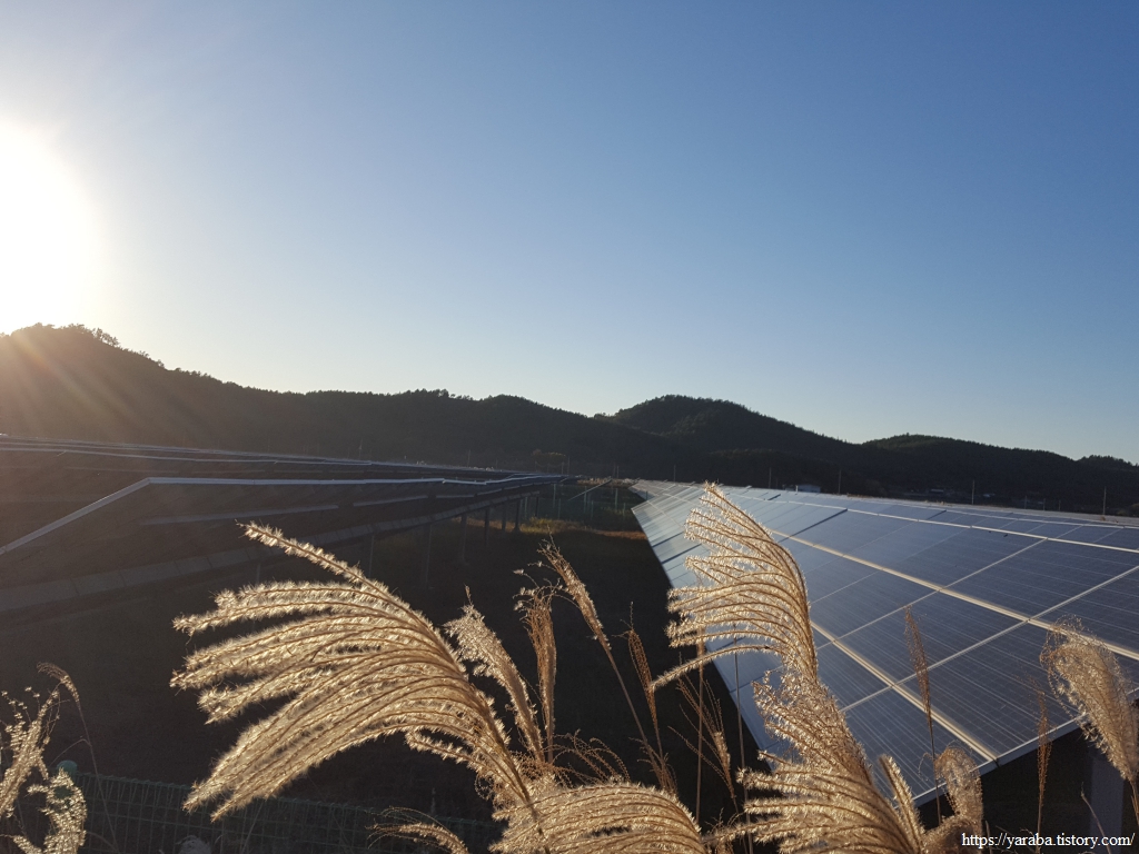 가차리로 넘어와도 태양광 패널은 여전히 우리와 함께 한다. 눈부신 황금빛 석양은 검은색 태양광 패널에도 색을 입히고 있다.
