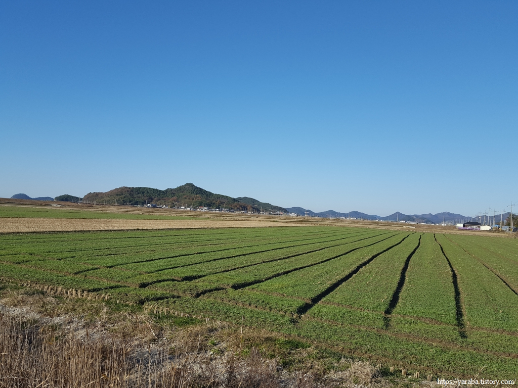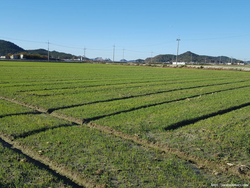 들판에는 벼수확 후 후작으로 심은 보리가 푸릇푸릇 생기를 내뿜고 있다.