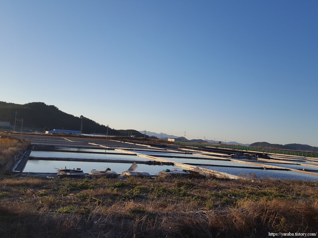 길을 걷다 보니 송지면에서 겨우 명맥을 유지하고 있는 염전을 만난다. 한국전쟁 이후 송지면과 문내면을 중심으로 넓은 갯벌을 이용하여 천일염을 생산하는 염전이 많았지만 경제성이 떨어지면서 대부분의 염전이 태양광 발전소로 전환했다. 해남 절임배추의 명성이 높아지면서 절임배추 생산을 소금 생산 기반을 유지해야 한다는 목소리에 태양광 관련 규제가 부가되기도 했지만 염전의 폐쇄 흐름은 막을 수 없는 모양이다. 아무튼 그런 상황 가운데서도 명맥을 유지하고 있는 이곳 염전의 소금은 명품 소금으로 이름이 난 모양이다.