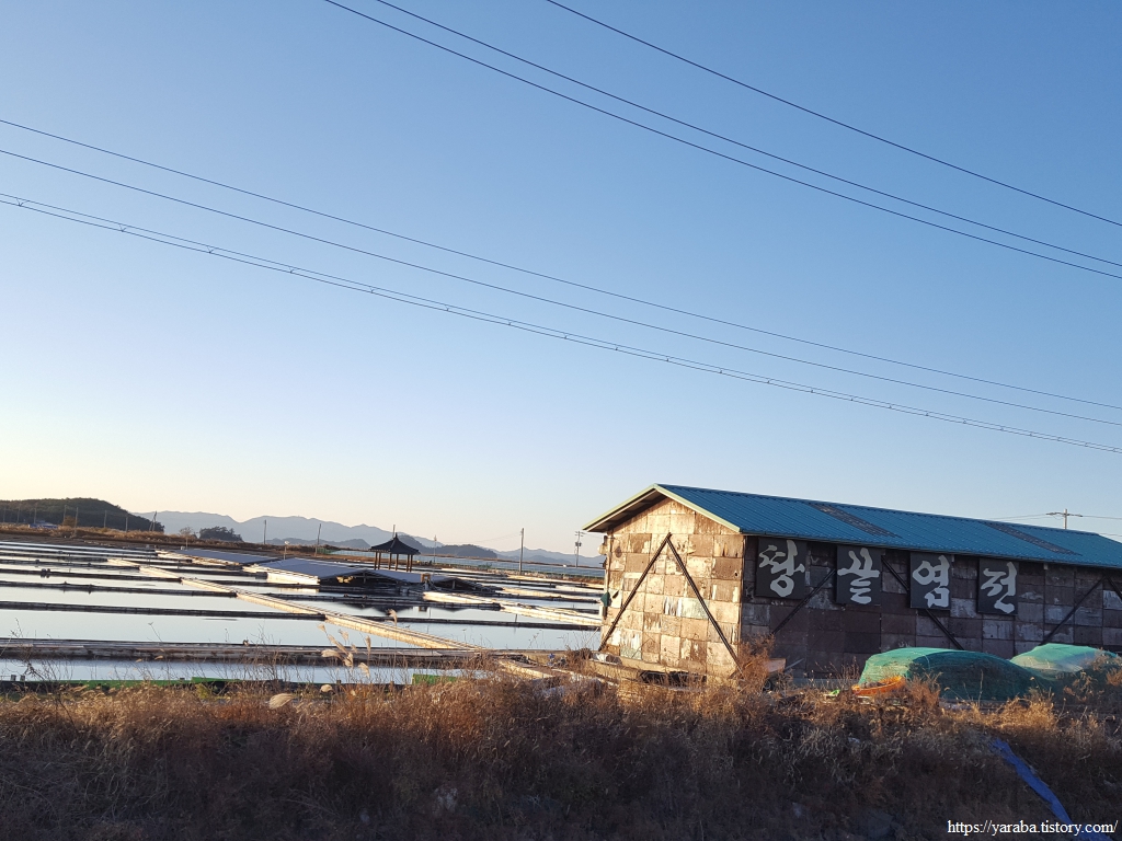 건축 폐자재로 지은 소금 창고의 빈티지한 모습과 노을을 비추고 있는 염전 풍경을 뒤로하고 길을 이어간다.