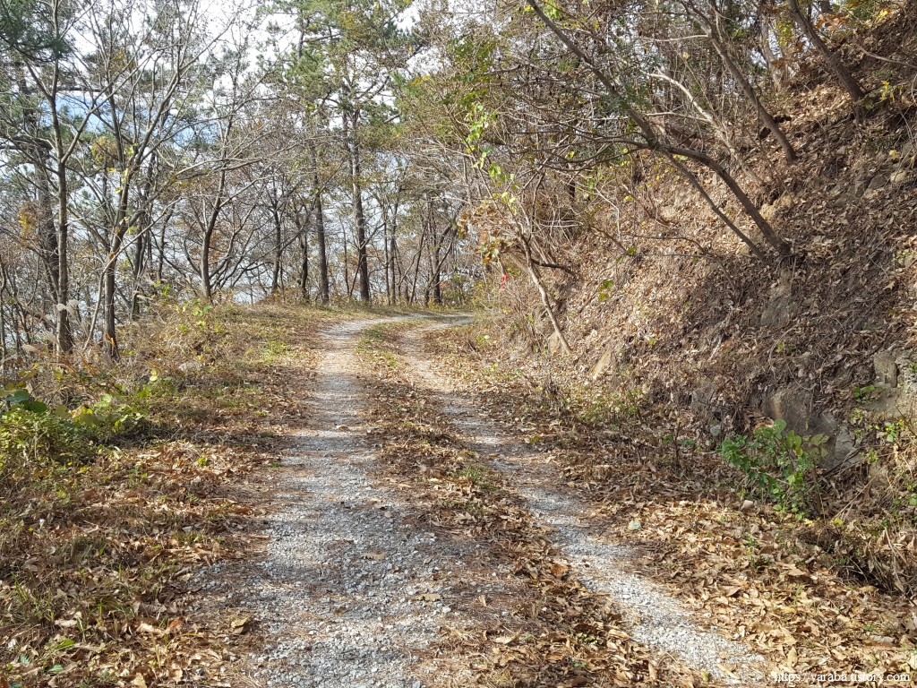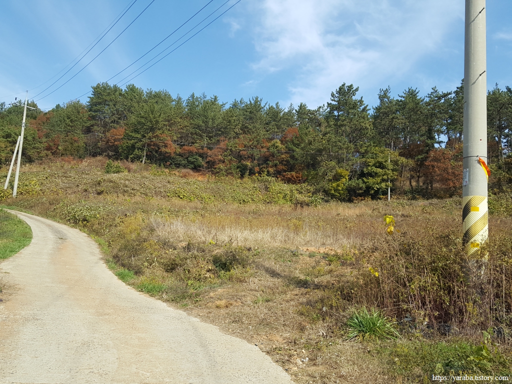 위의 그림처럼 관두산 자락을 올라갔다가 내려와 잠시 명성리 들길을 걷지만 다시 대월산 자락의 임도를 거쳐야 한다. 두 개의 산을 지나는 과정에서 오르막과 내리막을 반복하지만 모두 고도가 1백 미터 아래로 크게 부담 가질 필요는 없다.
