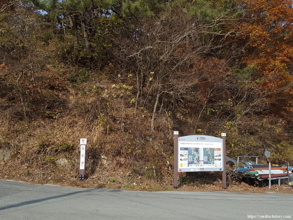 관동방조제를 지나면 좌회전하여 서해랑길 3코스를 시작한다. 영터정류장까지는 가지 않는다.