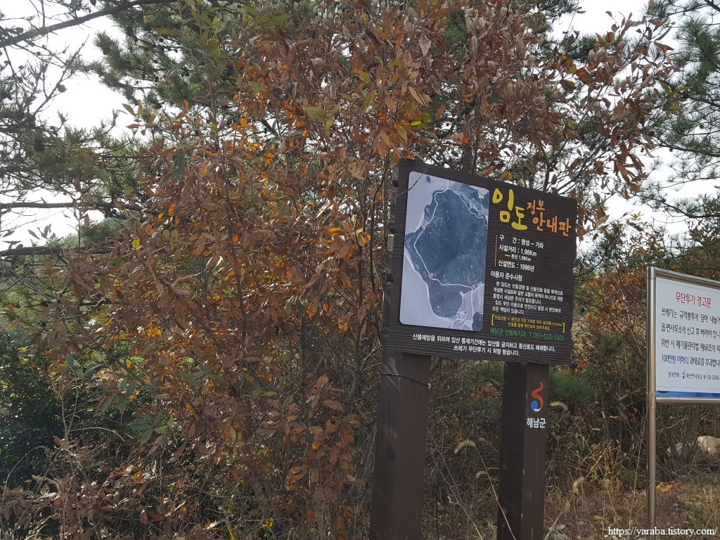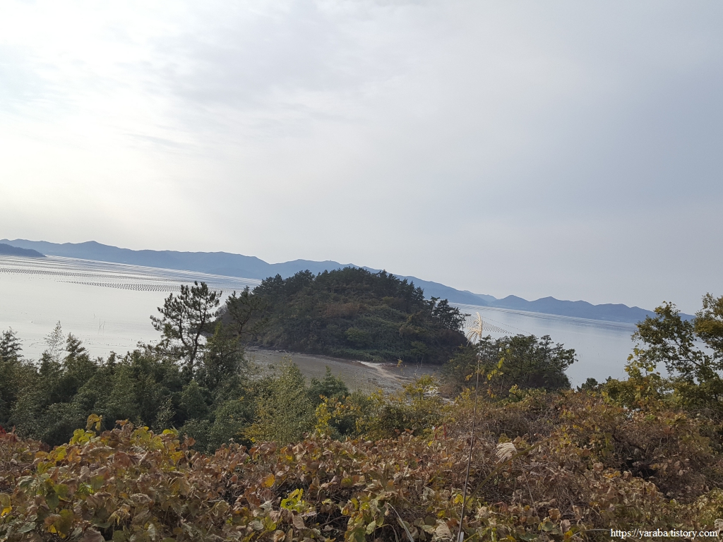 관두산 서쪽 끝자락에 이르니 해남에 속한 상마도, 안도, 중마도, 하마도가 나란히 시야에 들어오고 섬들과 육지 사이에 엄청나게 펼쳐진 양식장의 모습에 와! 하며 자연스레 입이 벌어진다.