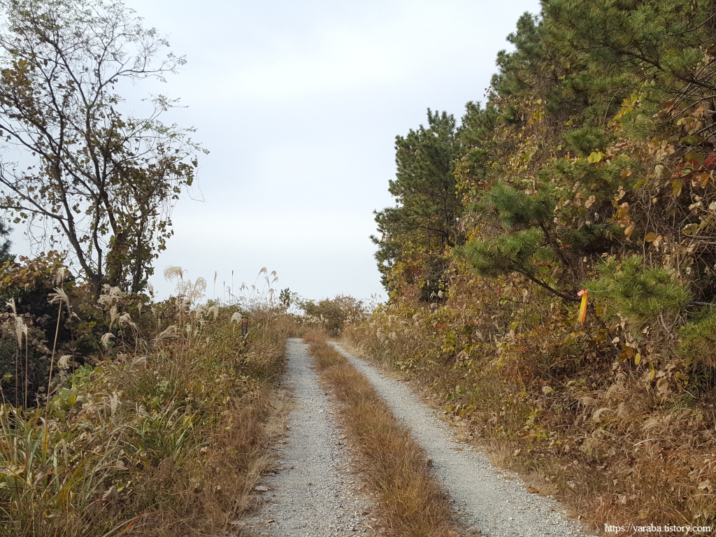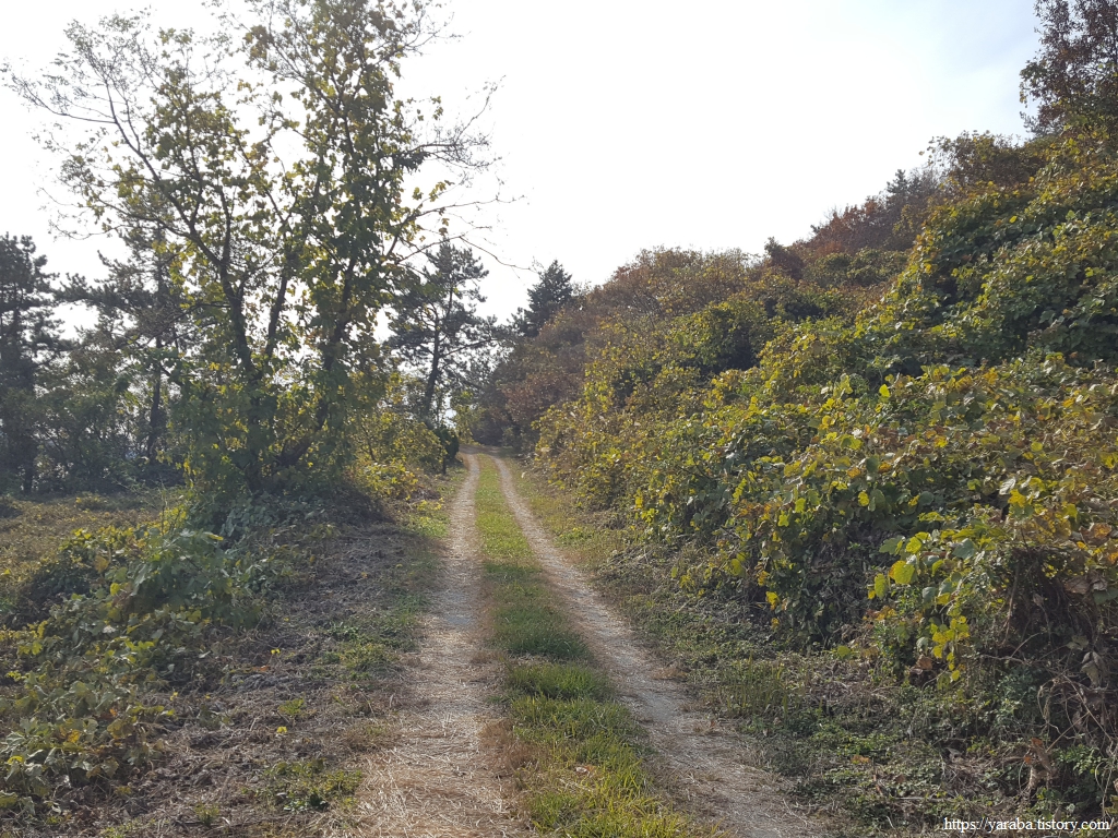 해안을 걷던 길은 우회전하여 임도를 따라 관두산 안으로 들어간다. 완만한 오르막길이다.