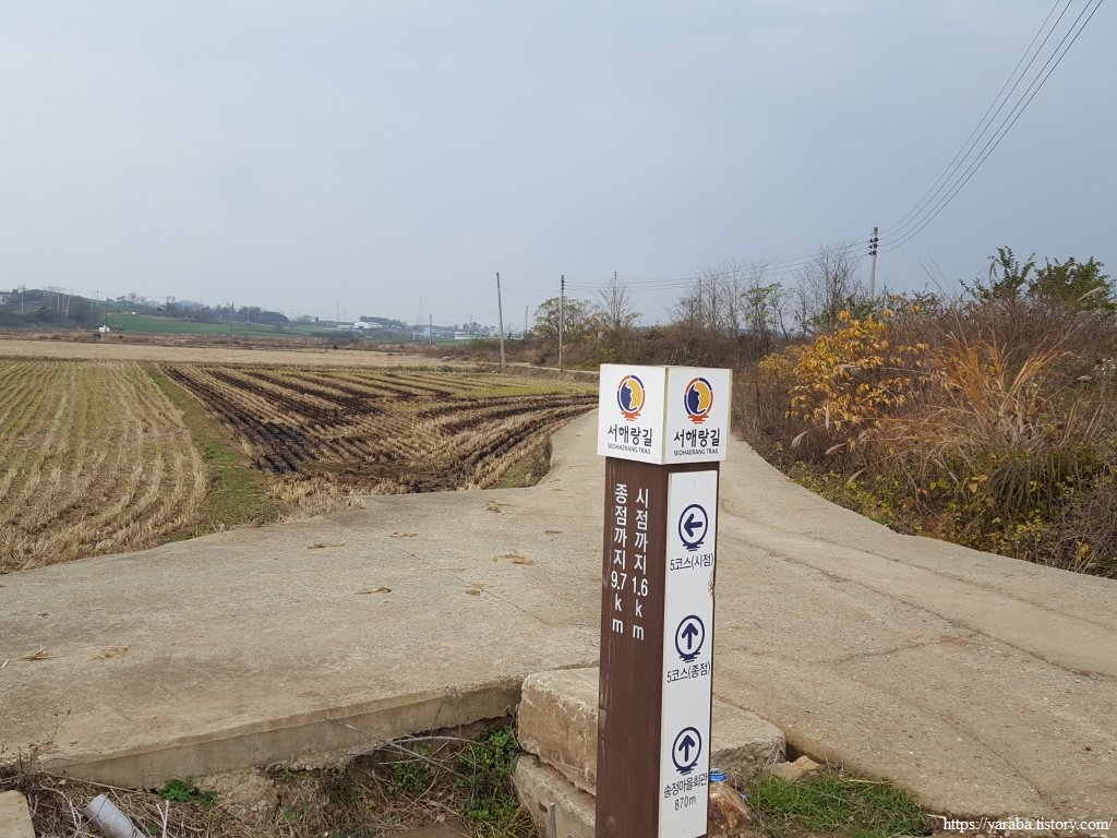 서해랑길 5코스는 등산 코스도 없고 길이가 12Km이니 확실히 마음에 부담이 적다. 신월마을을 지나 송정마을을 앞두고 있는 지점, 1.6Km를 걸었다.