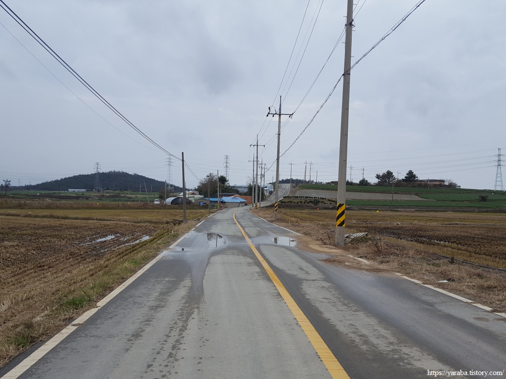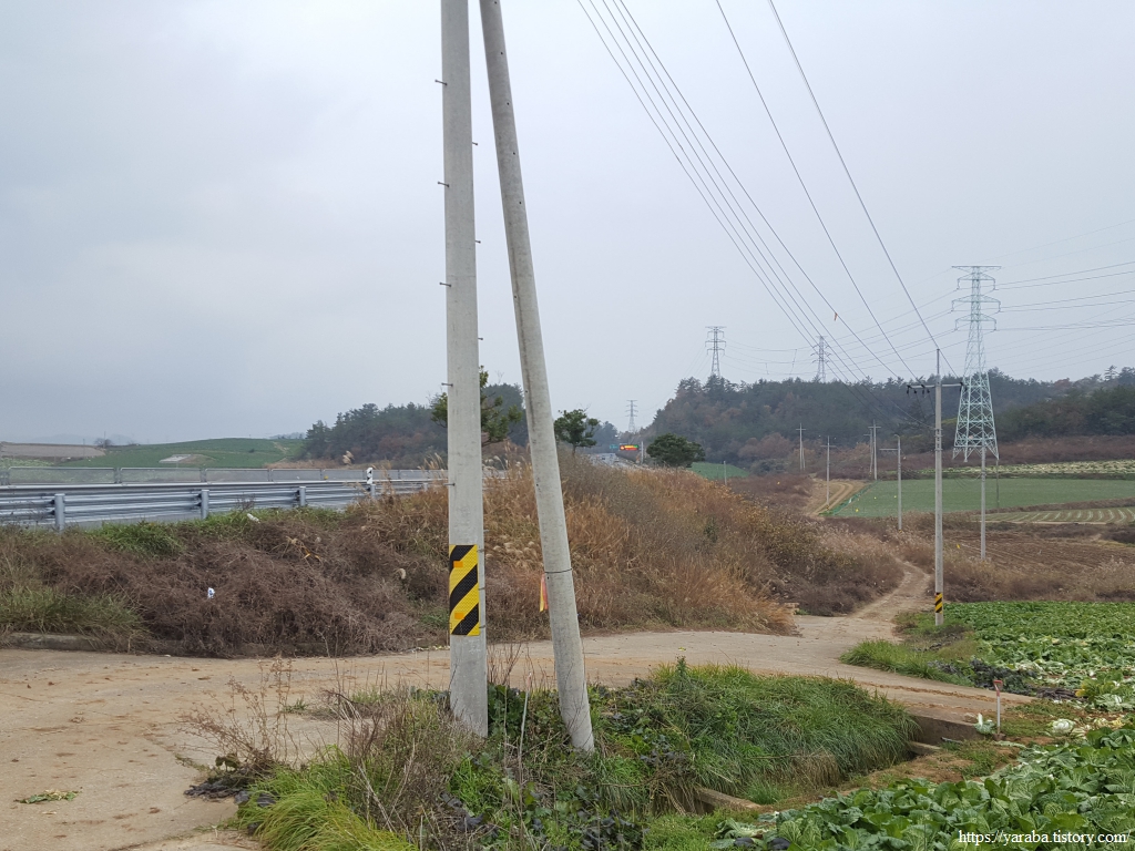 길이 송전선과 국도 인근으로 가면 이제 서해랑길 5코스는 남쪽으로 내려가기 시작한다.