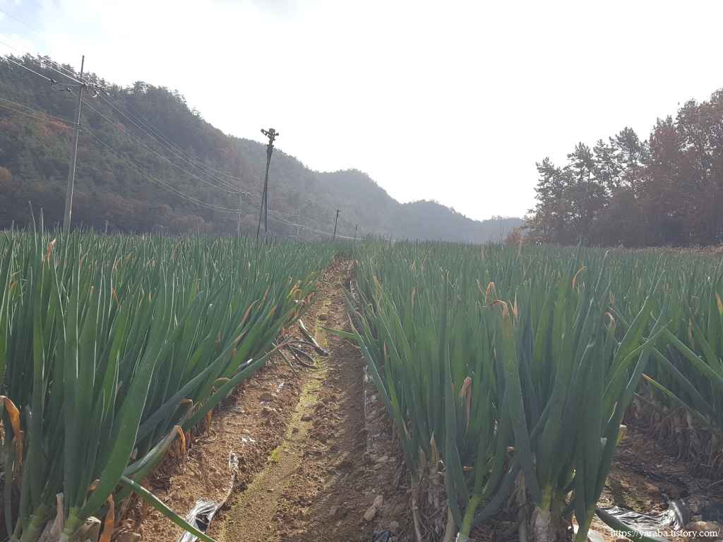 12월 초의 진도 연동마을 들판은 배추와 대파로 푸르름이 가득하다.