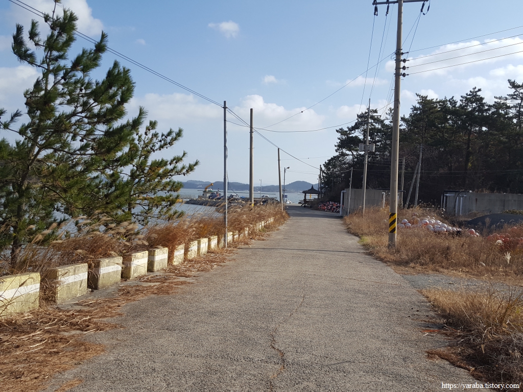 길은 포구 직전에 있는 양식장 쪽으로 우회전하여 연동마을로 향한다.