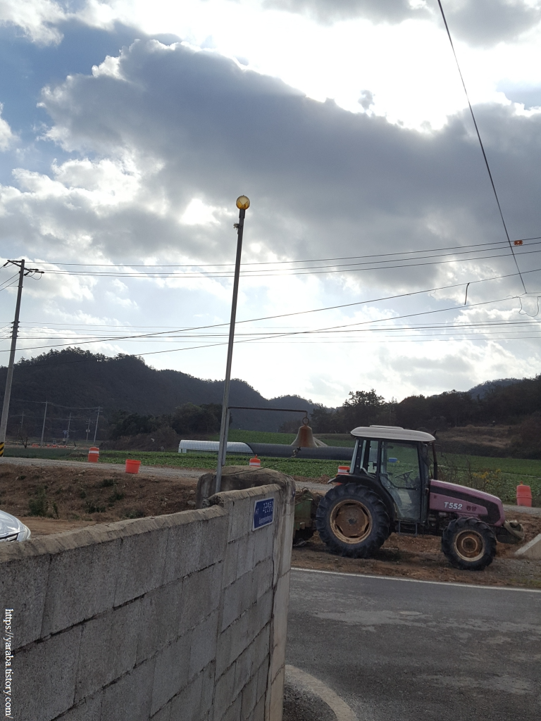 남도에 태극기를 달기 위해 깃대봉을 일괄적으로 설치한 마을은 곳곳에 있지만 깃대봉과 종이 함께 있는 마을은 처음 본다. 초인종을 대신하는 것인지, 아니면 비상 상황을 한꺼번에 알리기 위함인지는 모르겠으나 깃대봉과 종은 독특하기도 하고 나름 좋은 아이디어 아닌가 싶다. 농촌에서 대문을 지키는 개가 짖지 않으면 다른 집에 들어가기가 조금은 뻘쭘하기도 한데 종이 있으면 사람이 왔다는 표시를 할 수 있으니 좋지 않을까 싶다.