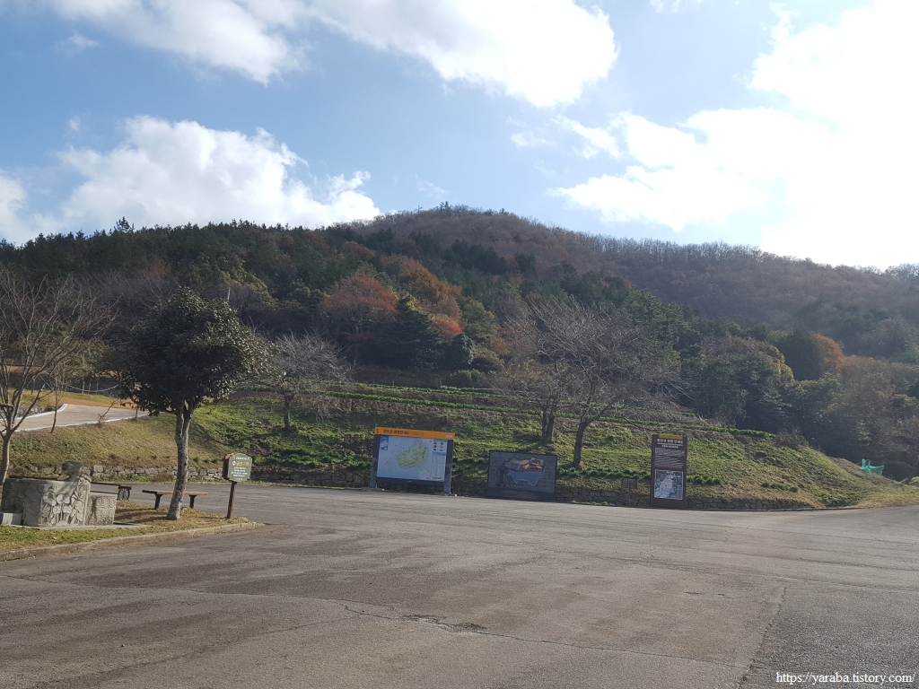용장제 저수지까지 내려오면 용장사 주차장 아래를 돌아서 서해랑길 6코스 종점이자 7코스 시작점인 용장성 주차장으로 올라간다.