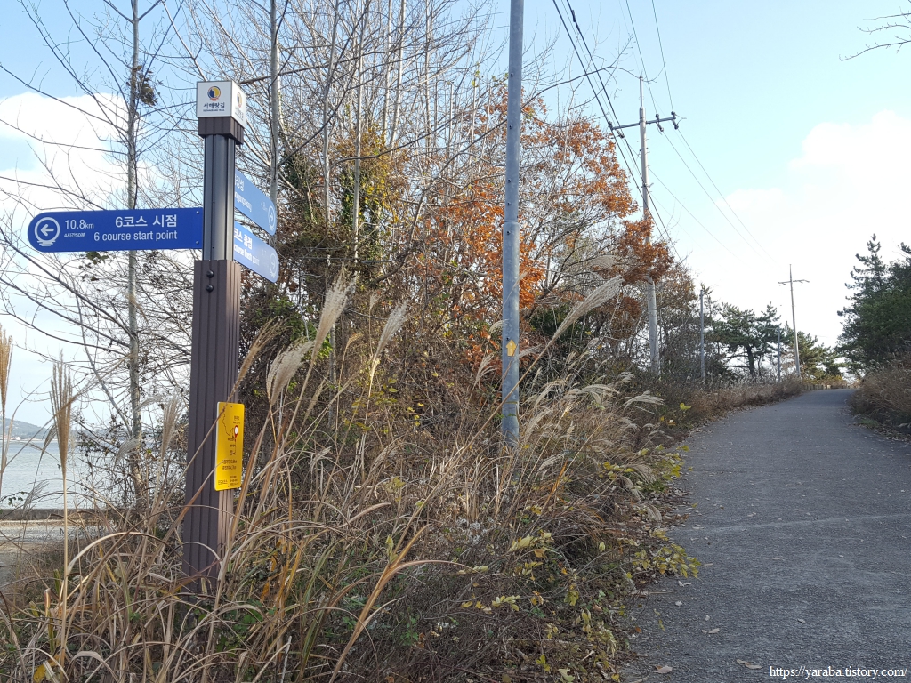 삼별초 호국역사 탐방길 표지판이 있고 서해랑길과 만나기도 하지만 동일한 길은 아니다. 서해랑길 6코스는 방조제 둑방길을 걷는다.