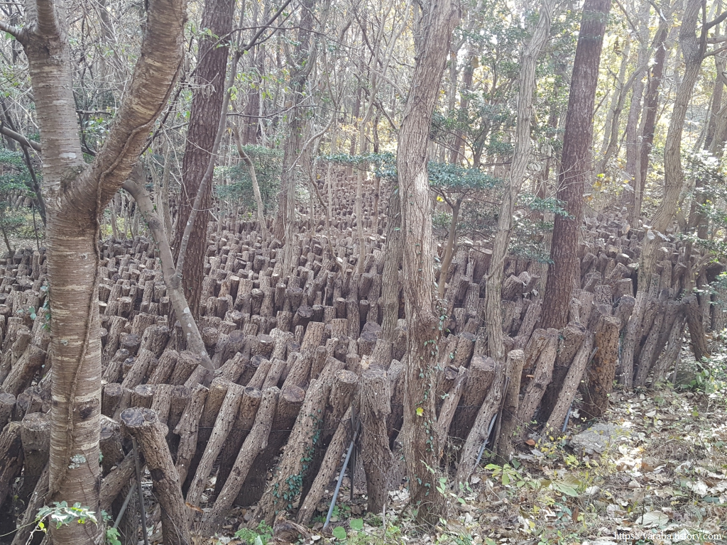 임도 옆 숲 속에는 엄청난 표고목들이 봄을 기다리고 있다. 일부 나무에는 가을에 따고 남은 표고버섯이 달려 있다. 사실 수입 표고버섯의 점유율은 10% 내외라고 하지만, 버섯을 키우는 종균이나 톱밥배지를 중국에서 수입하는 물량을 생각하면 점유율은 70%를 훌쩍 넘는다. 톱밥배지를 수입해서 국내에서 버섯을 키우면 국내산이 되는 것이 현실이다.