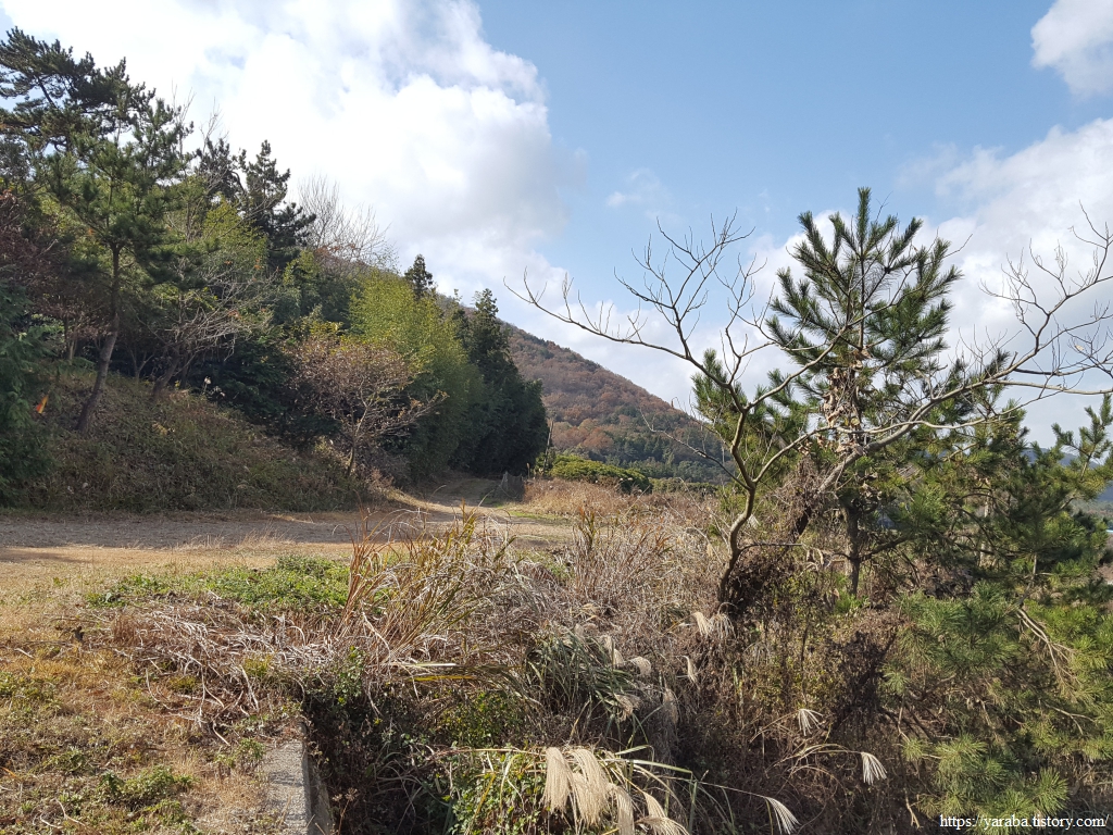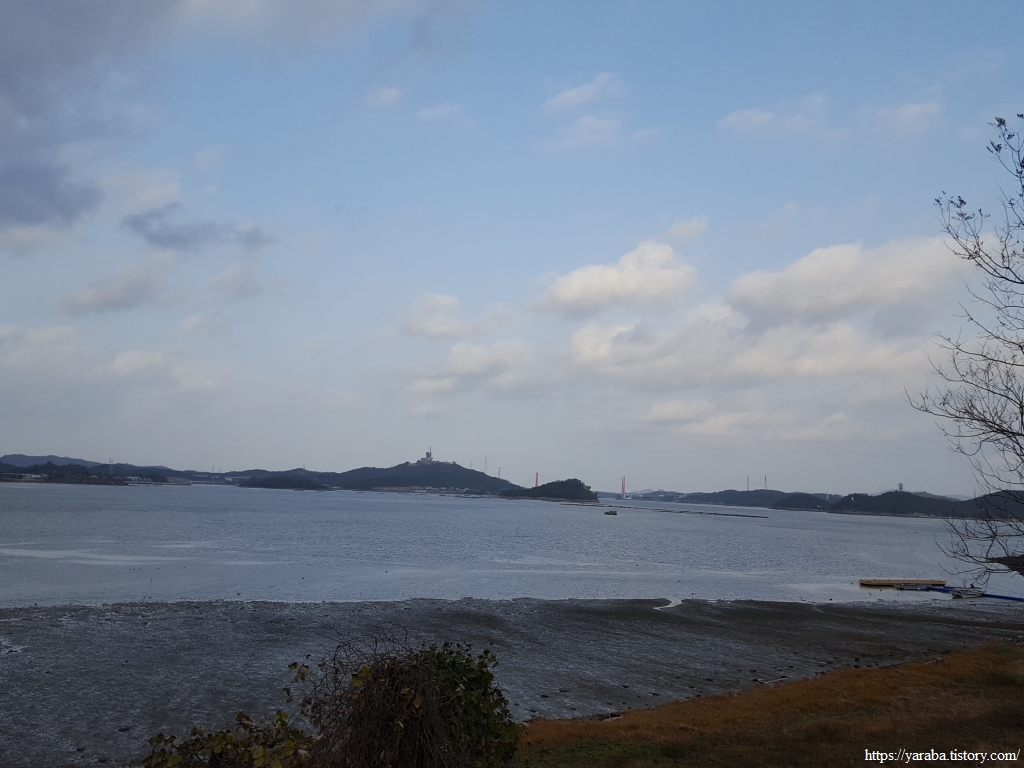 둔전방조제를 지나면 명량대첩로 해안도로를 따라 오류리 곶 끝자락을 돌아간다. 언덕 위에서 바다 건너 북쪽을 바라보니 이제 진도 타워도 아득해졌다.