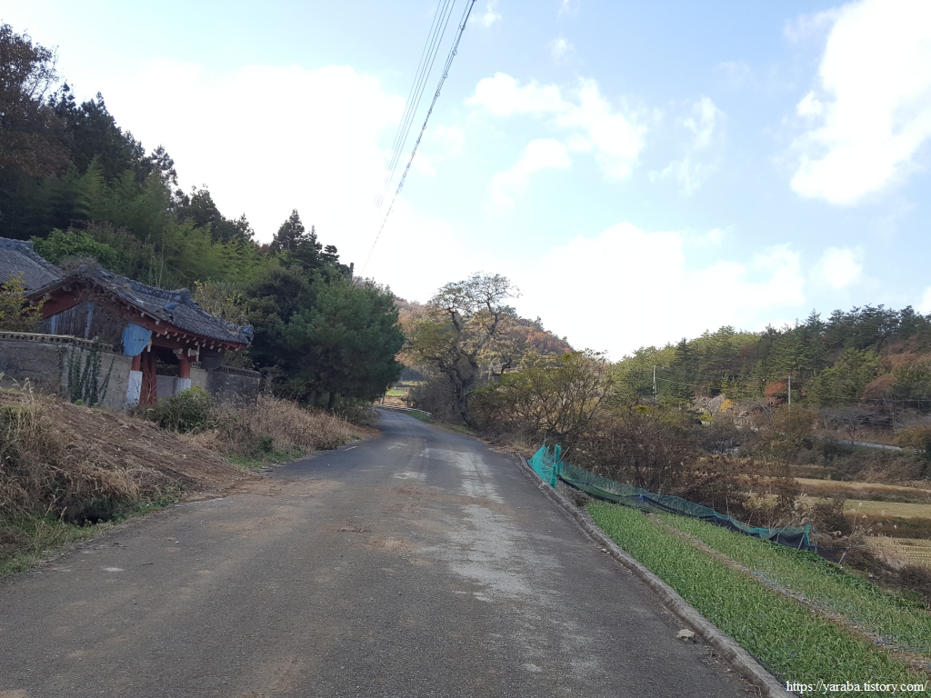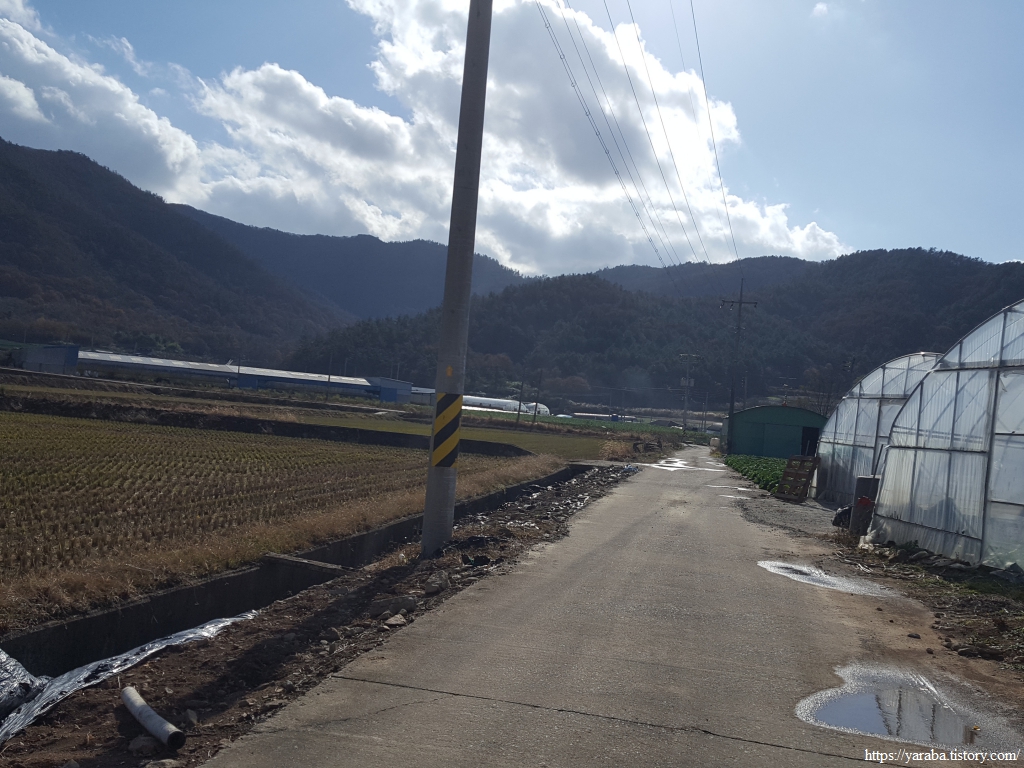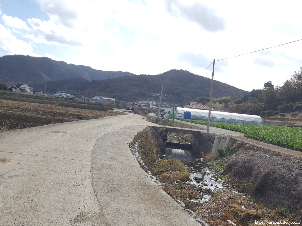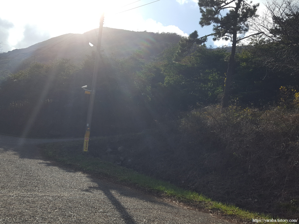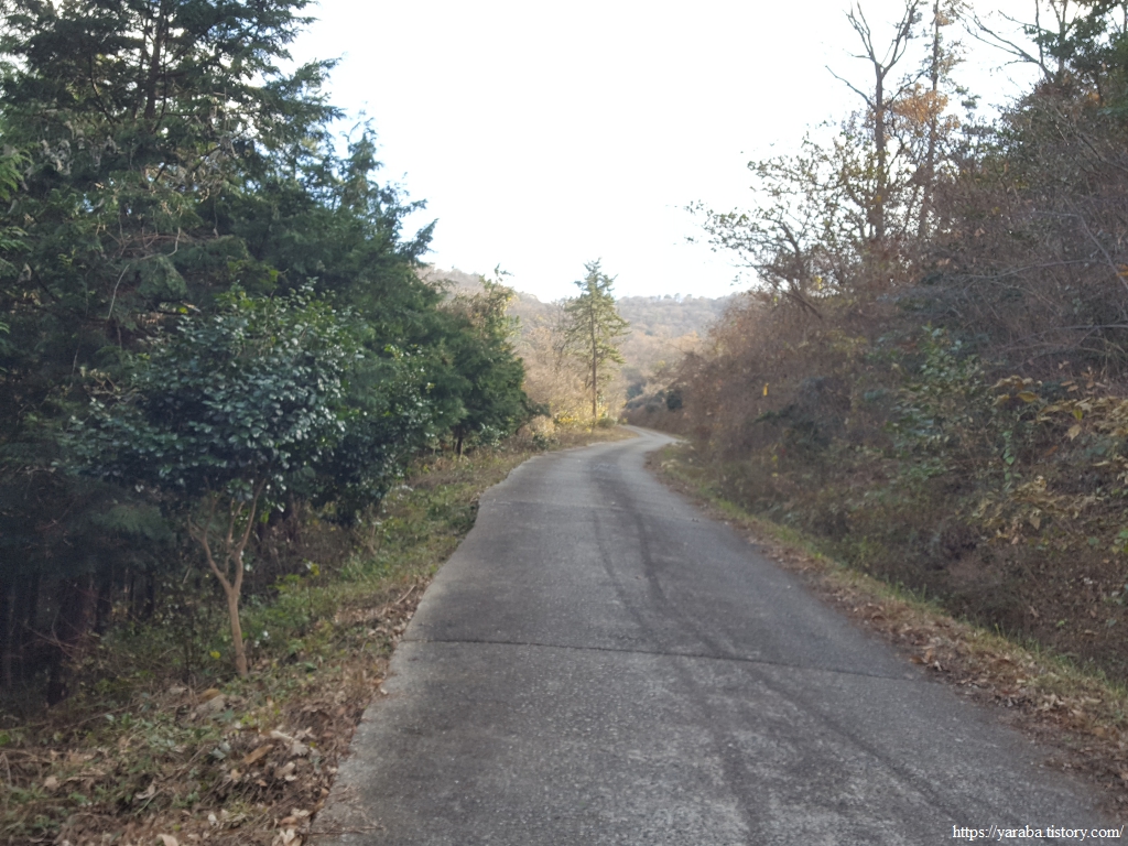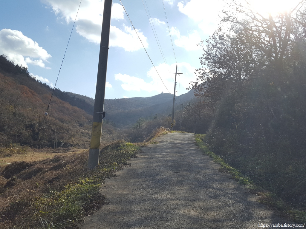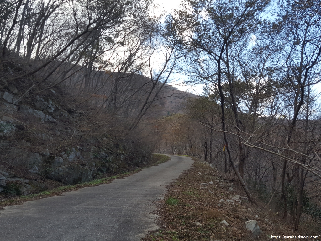죽제산과 첨찰산 사이의 고개를 넘기 위해 계곡 안으로 들어가는 길, 고성마을에서 고갯마루까지 완만한 오르막이 이어진다. 완만한 오르막의 임도를 걷는 것이기 때문에 발에 부담을 가진 필자의 입장에서 나름 걷기가 좋았다. 그렇지만, 구불구불 계곡길을 따라 오르막길만 5Km가 넘기 때문에 나름 마음의 준비를 해야 한다.