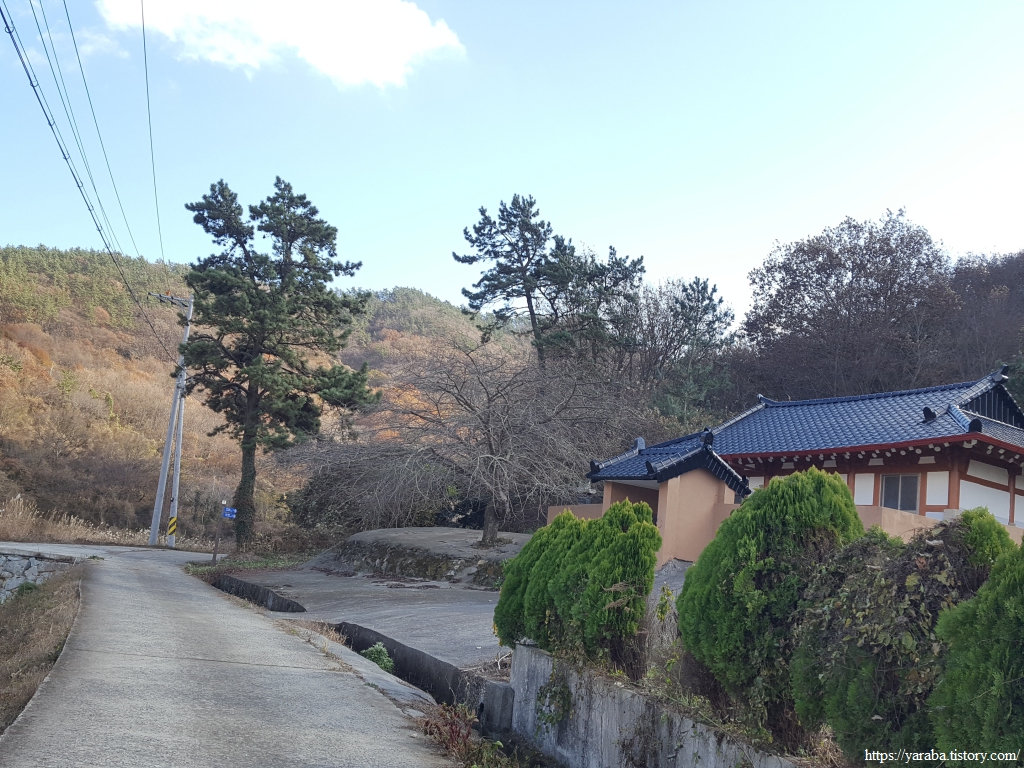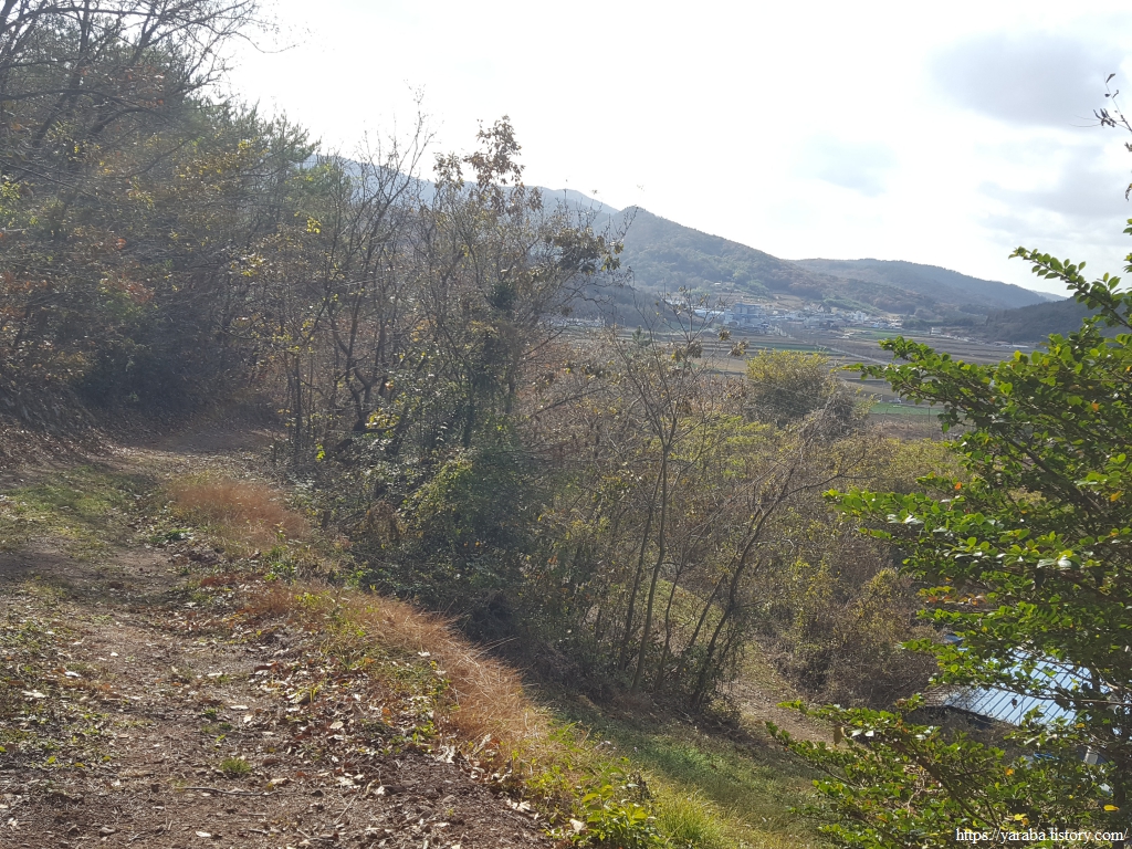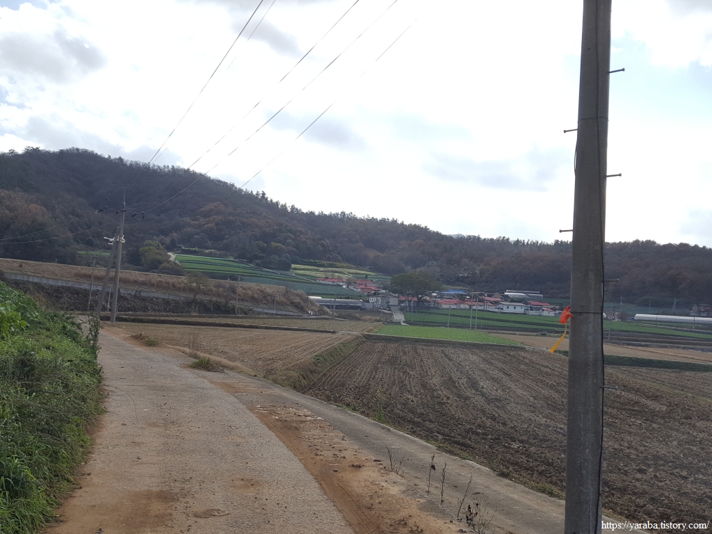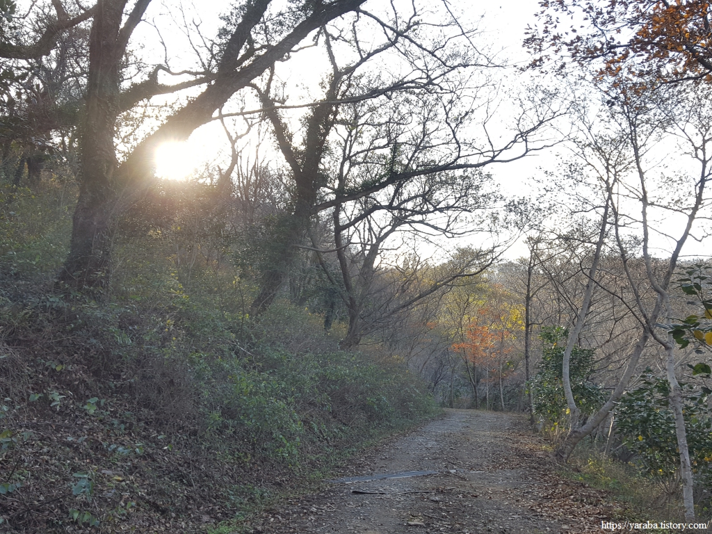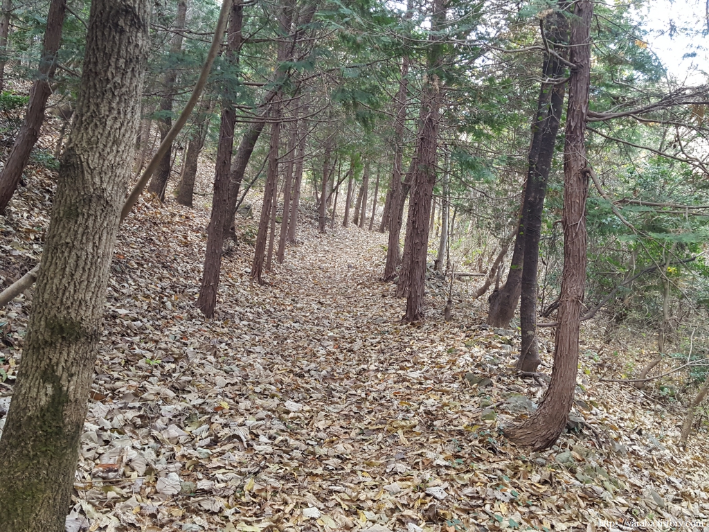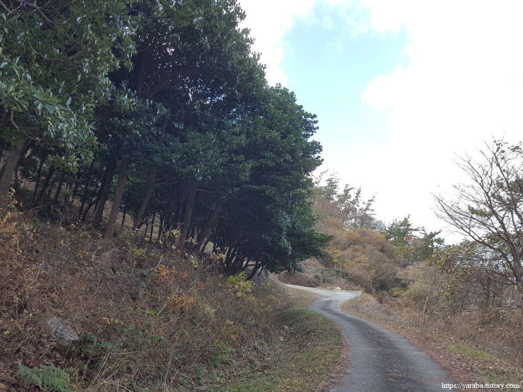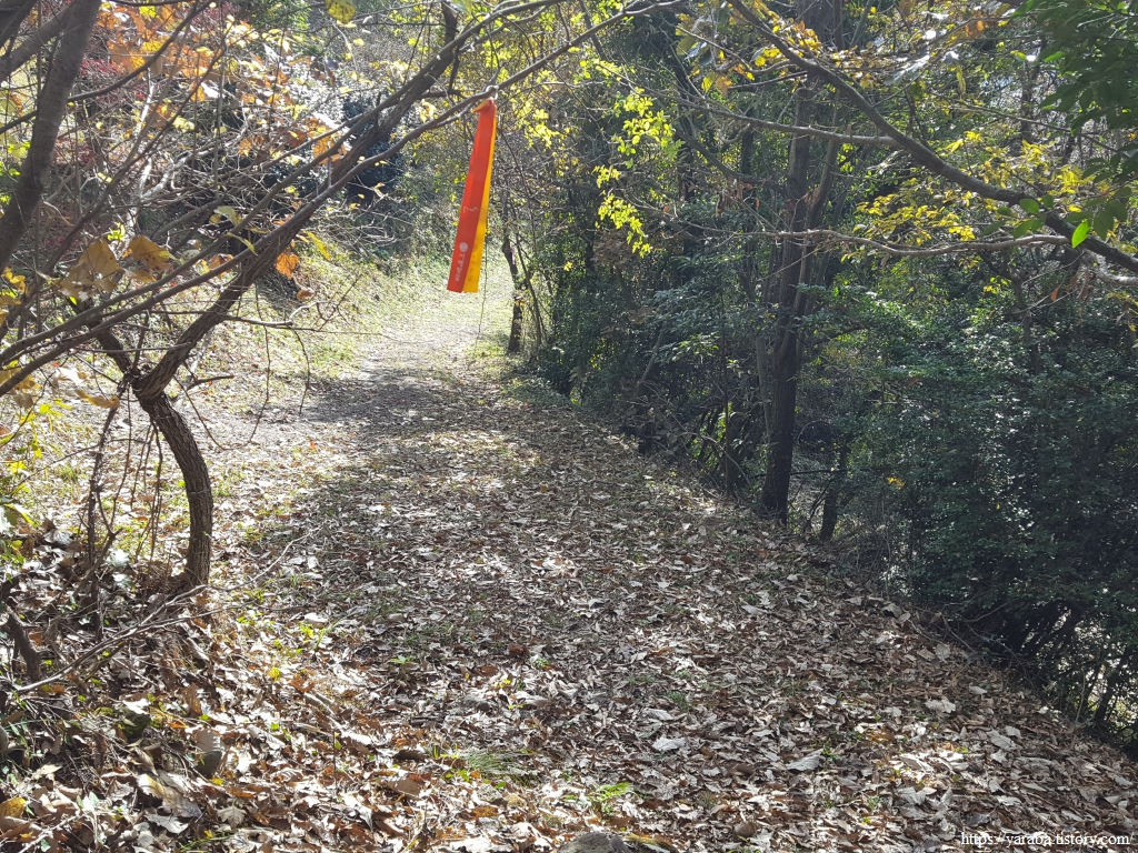 낙엽이 없는 나무를 조림한 구간도 주위에서 떨어진 낙엽이 수북하다. 이런 감흥을 즐기며 걷다가 서해랑길 리본이 이리저리 헤매는 구간을 만나기도 했다. 사람들의 발길이 많이 없는 숲길의 모습이 아닐까 싶었다. 다행히 리본을 따라 길을 찾았지만, 분명 리본을 따라갔는데 길이 없어지는 순간은 당황스러운 것이 사실이다.