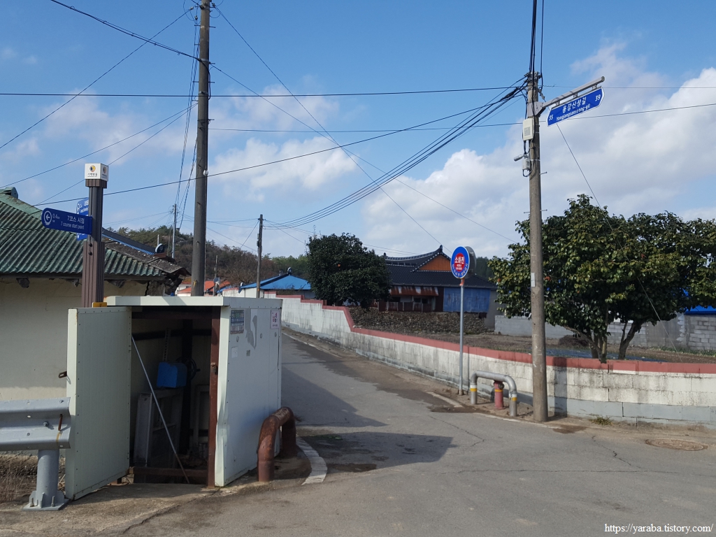 길은 용장성 앞에 자리한 용장마을을 서쪽으로 가로질러 간다. 이곳은 삼별초의 용장성 앞에 있어서 그런지 마을정자의 이름도 삼별초정자이다. 고려 때만 해도 용장마을은 진도군의 군소재지였다고 한다. 유서 깊은 마을이다.